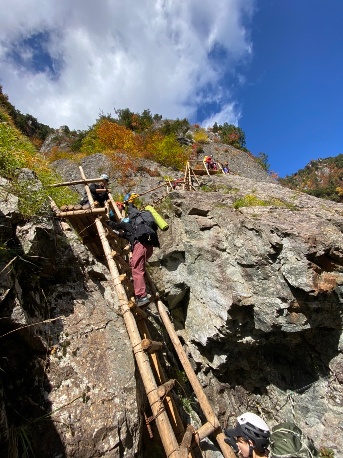 木製の梯子が組んであり、ここをどんどん上る。梯子を作ってくれた人に感謝!ですが、下ノ廊下の怖いと思うNo1がこの梯子。
