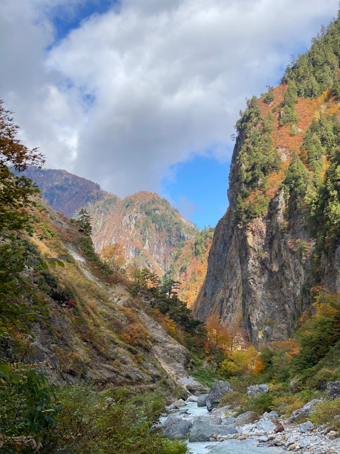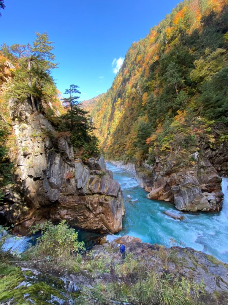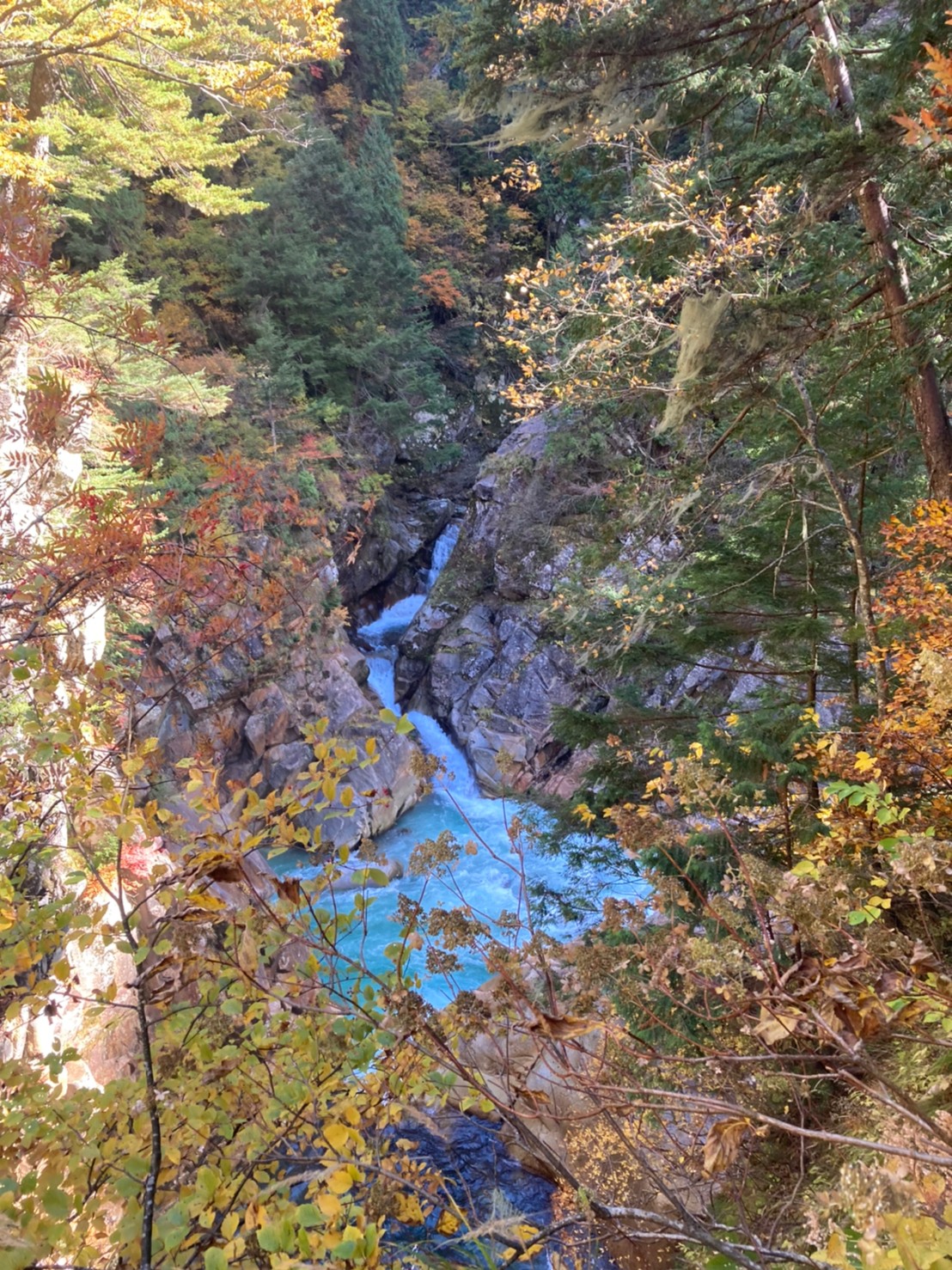 お天気に恵まれて青空と紅葉、迫力ある岩と水の音に囲まれて、山に浸った2日間でした。