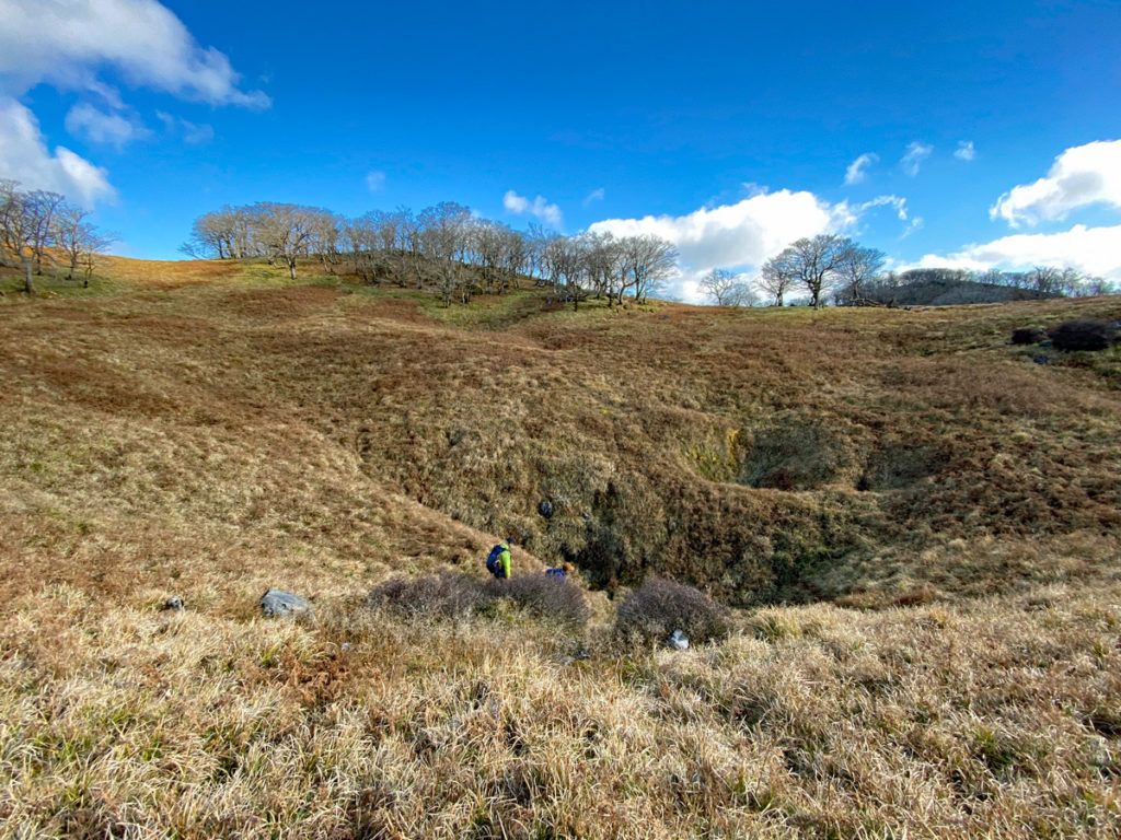 K林さんとN澤さんがドリーネ最下点を探索中笑