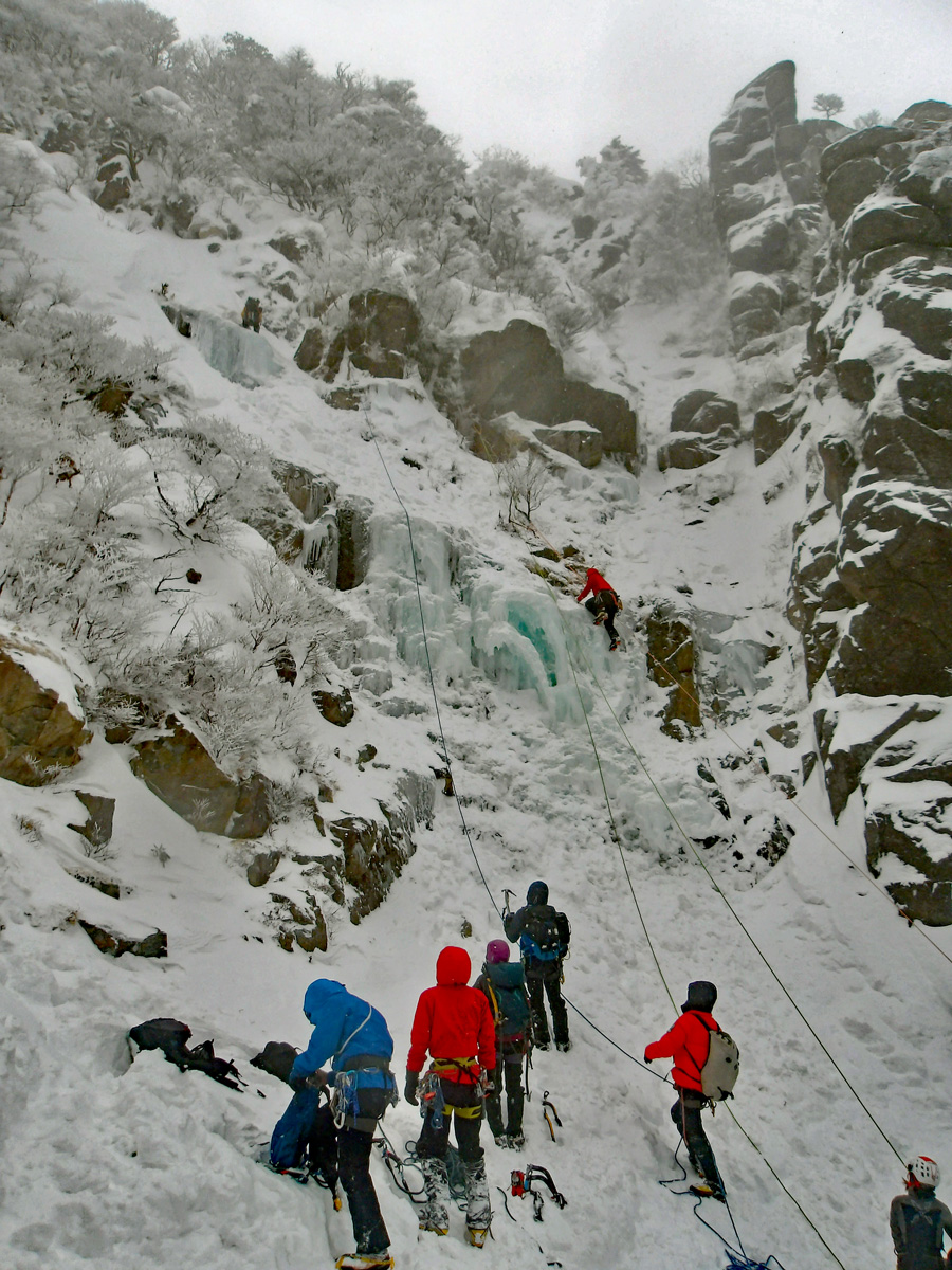 今シーズン初のアイスクライミングだったので、アイス技術を想い出す事も含めて、増井氏のクライミングスクールに参加した。本当は他に1名参加だったが、新名神が凍結による通行止めで私一人となり、実質プライベート講習のような形になった。