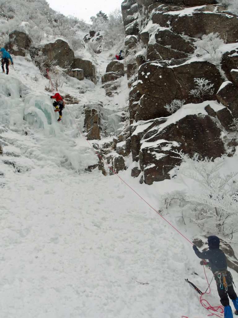 二日間、御在所でアイスクライミングを楽しめて良かった。足の調子も良くてなによりでした。3ルンゼは、Topロープ張れて初心者の練習に適したこともあり、クライマーが集まりやすい。ロープウェイから最初に取り付ければ、後からクライマーが来ても結構楽しめる。次回は会メンバーも連れてアイスクライミングを楽しめればと思っています。