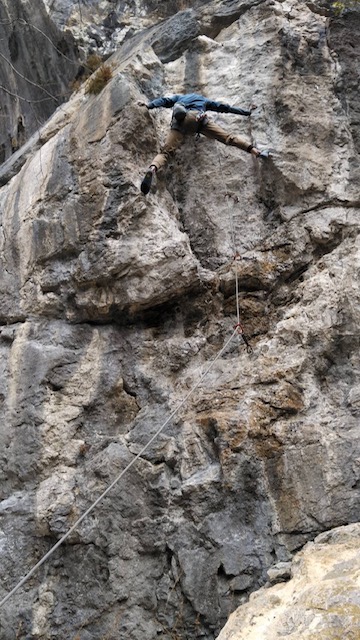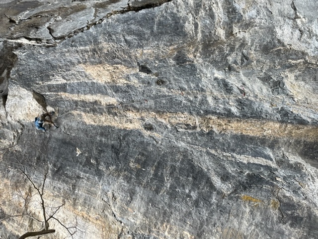 K林先生はラ・バンバ(5.11a)を何年かぶりに再登。