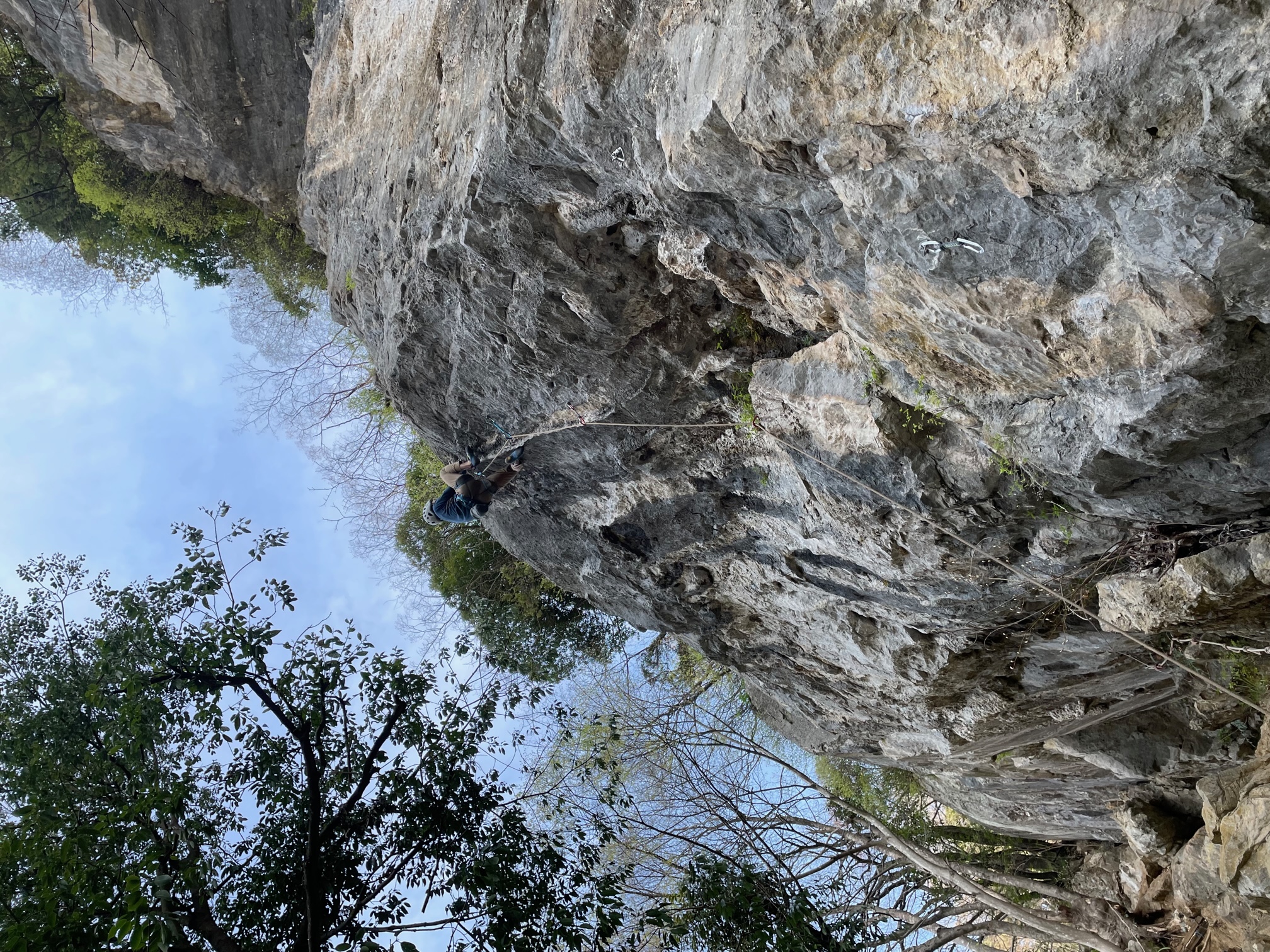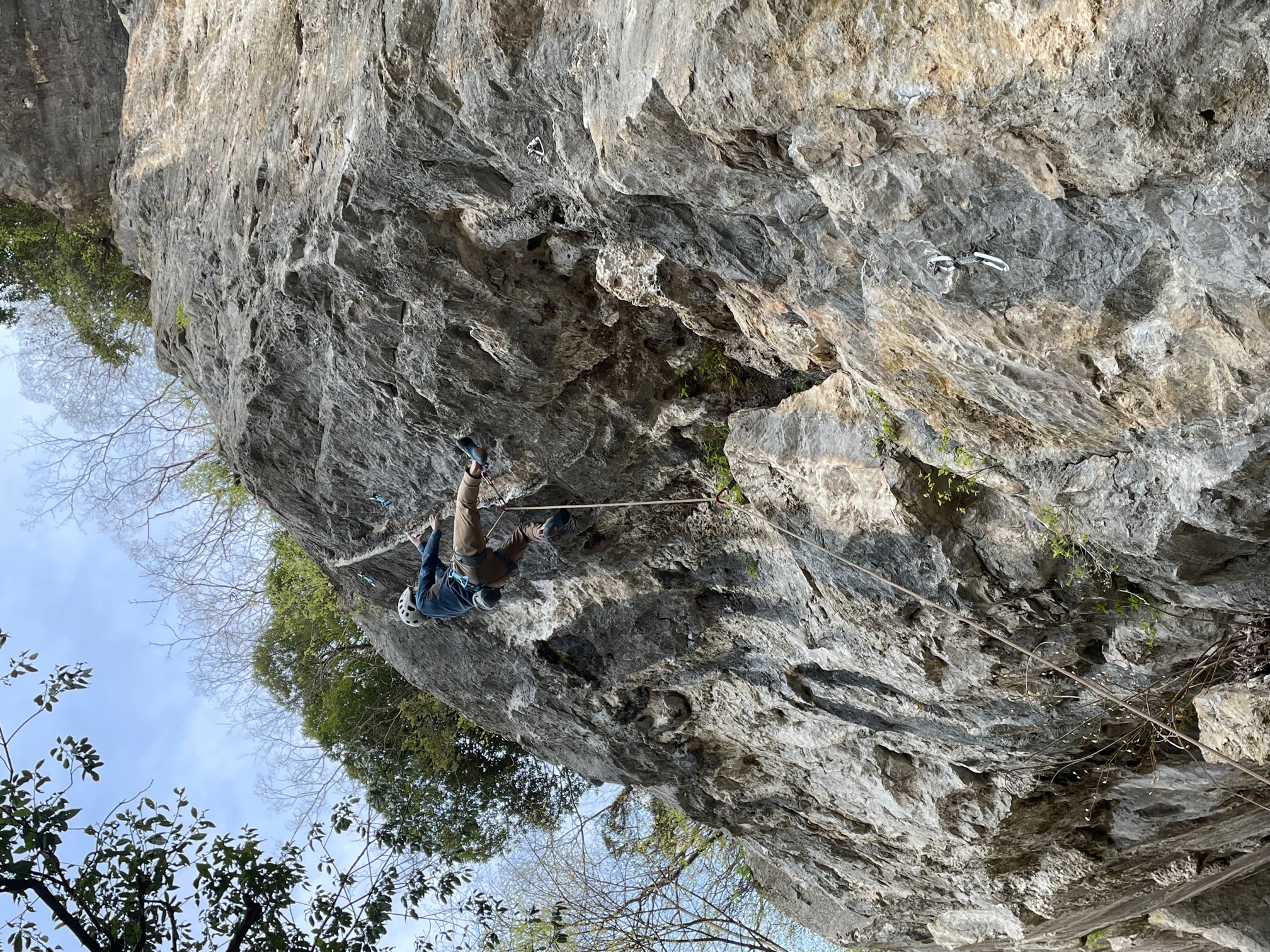 M尾さんは、コアラのマーチ(5.11C)を完登RP後、ハイカラサン(5.12a)をトライ。