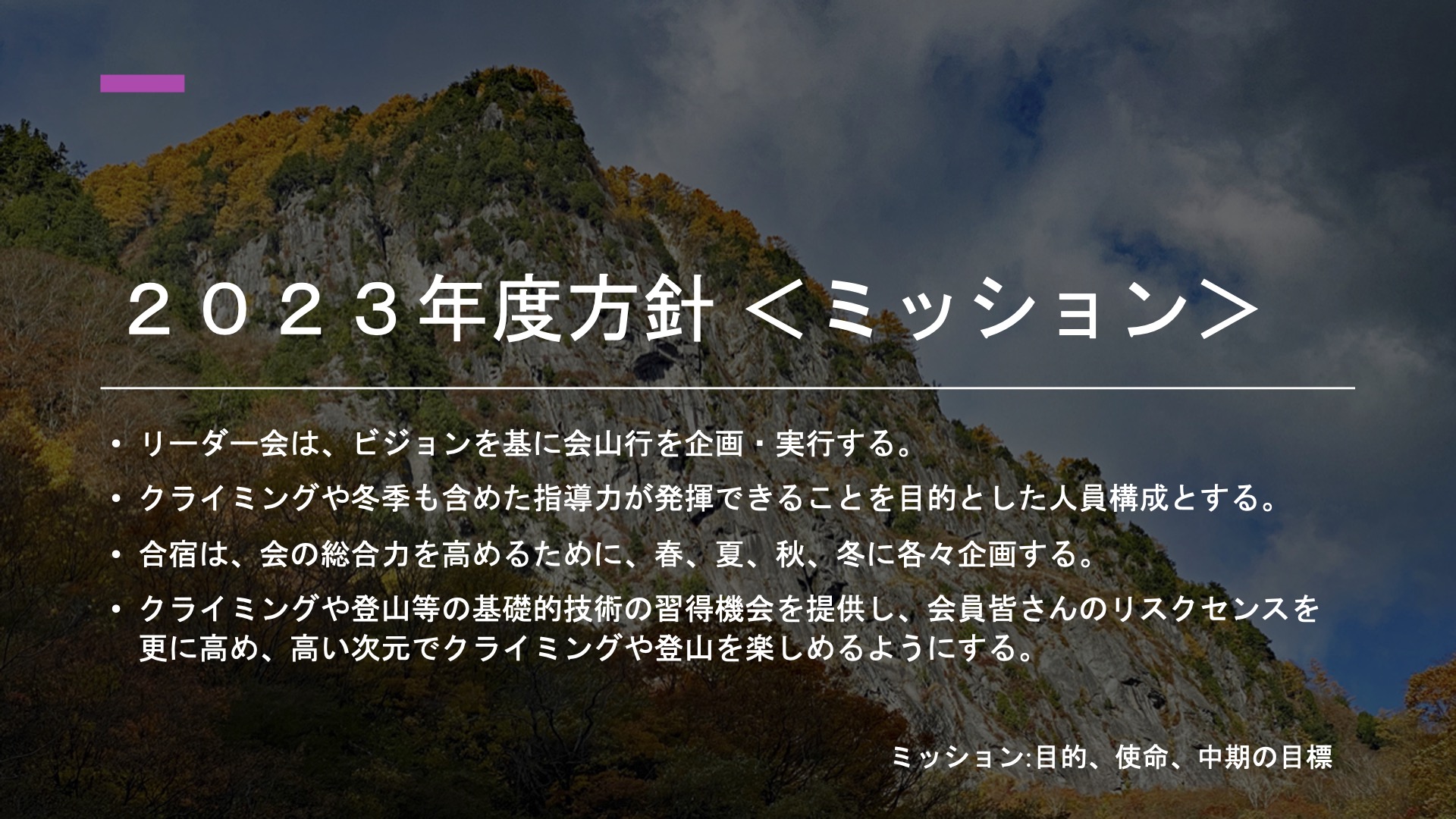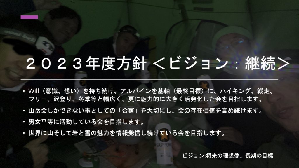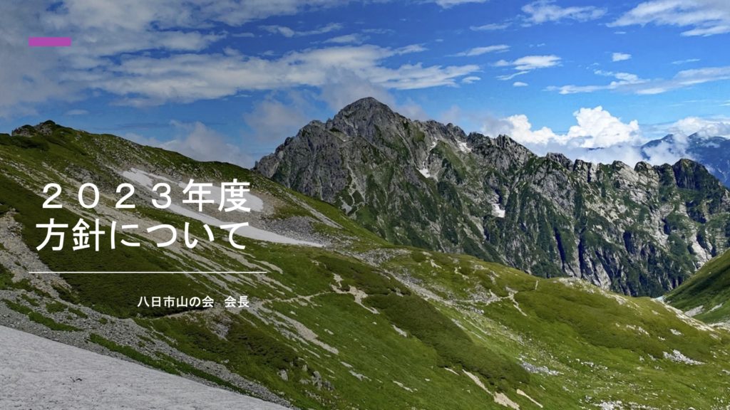 2023年4月2日に、八日市山の会 第55期 総会が開催され、2023年度方針が承認されましたのでブログへ部分公開致します。関係する皆様方のご理解ご協力を頂きながら、今年度も継続して価値観の「ワクワク:Exciting!!」をモットーに一年間進めて参ります。よろしくお願い致します。