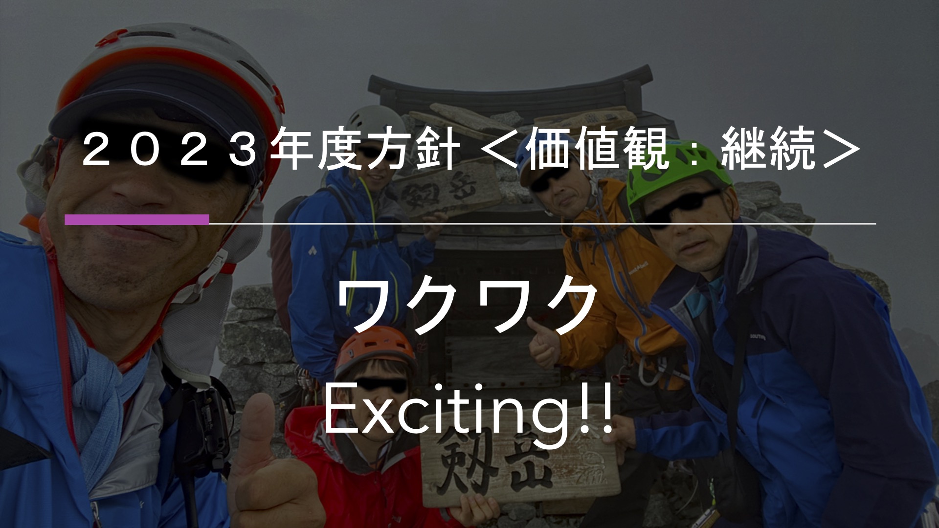 価値観:背景写真は、剱岳山頂での全員写真