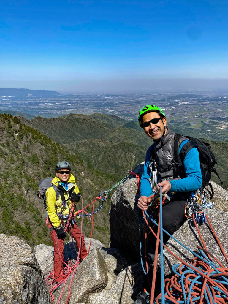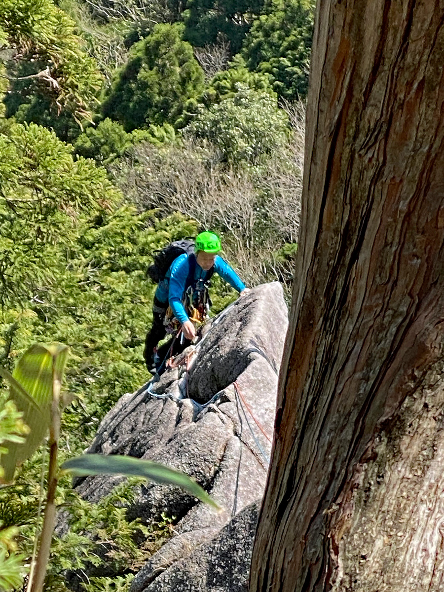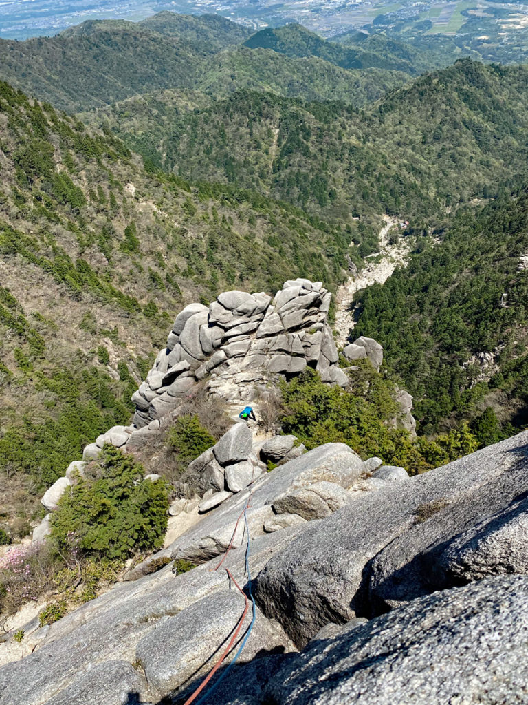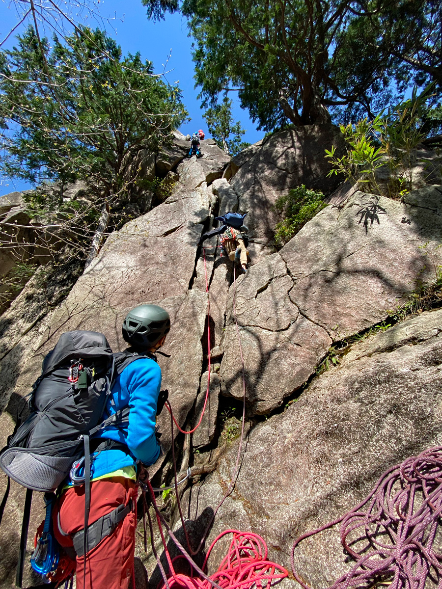 S根さんは、まずはマルチに慣れてもらうということで全ピッチをフォローで登って頂きました。K林先生-M戸ペアは、K林先生が前回ルート間違いやリードで登れていないピッチがあったので、できる限りK林先生にリーダー頂くというのが狙いです。