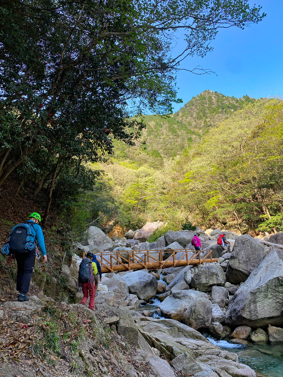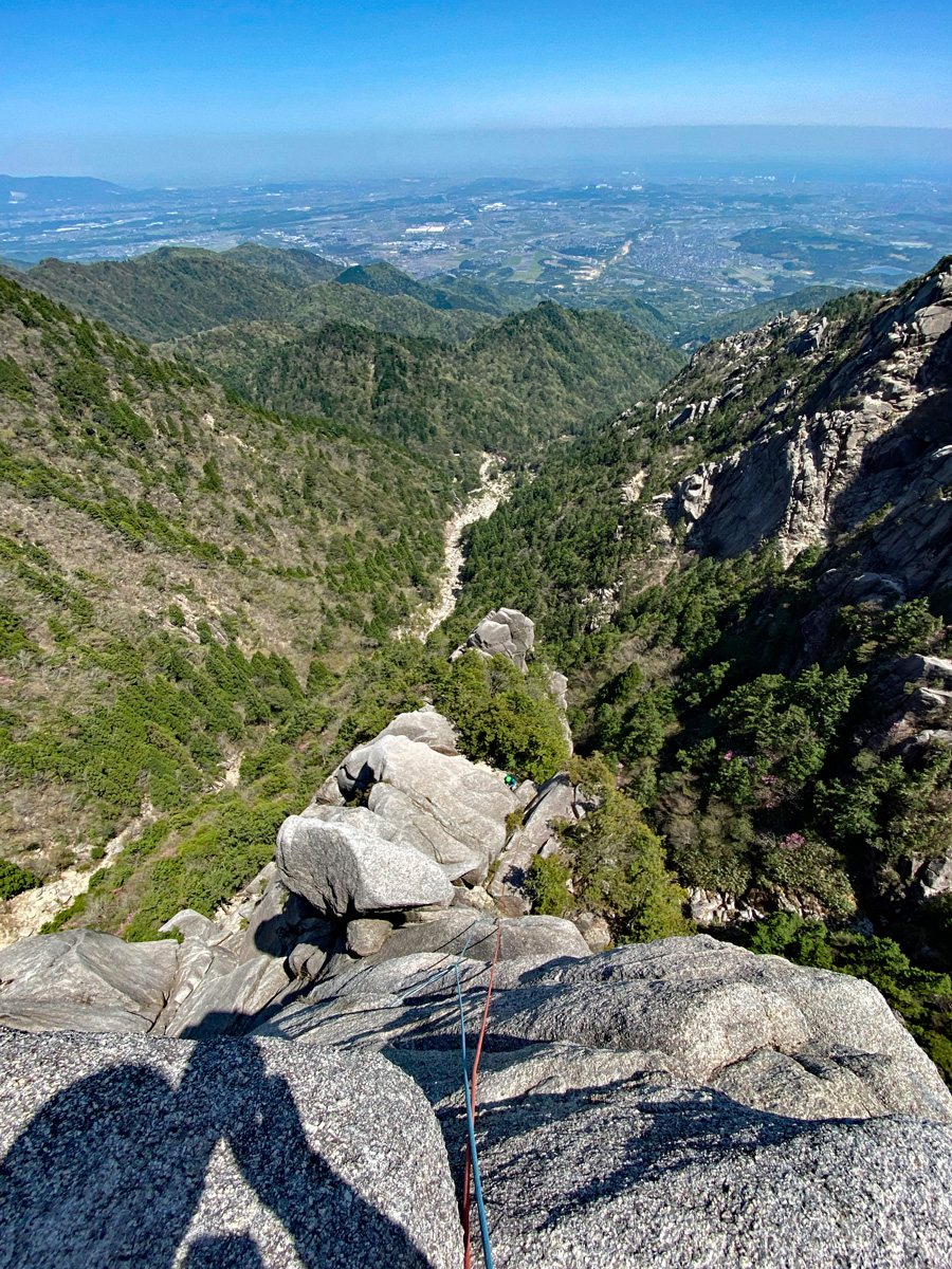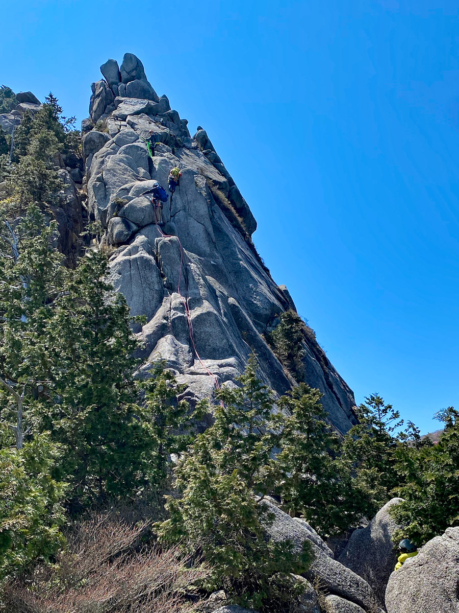 S根さんは、まずはマルチに慣れてもらうということで全ピッチをフォローで登って頂きました。K林先生-M戸ペアは、K林先生が前回ルート間違いやリードで登れていないピッチがあったので、できる限りK林先生にリーダー頂くというのが狙いです。