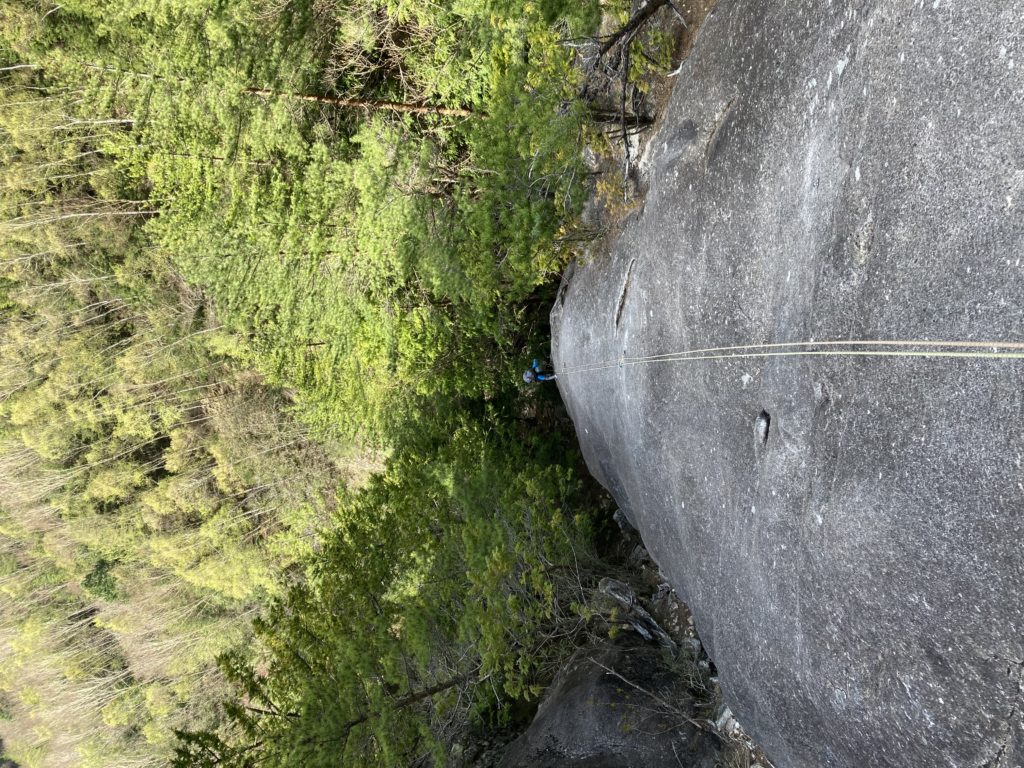 50mのダブルロープであれば、1回で基部まで、下降ができました。