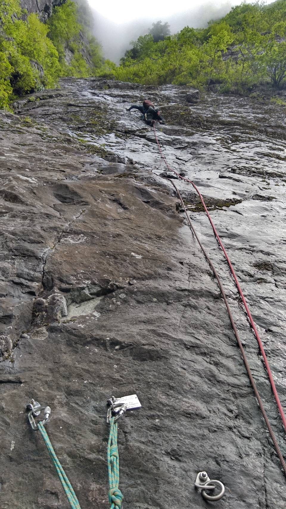 手も足もホールドはずぶ濡れ、ここで落ちたらグラウンドフォールするなぁと慎重に。