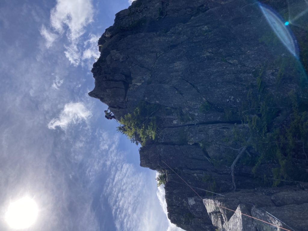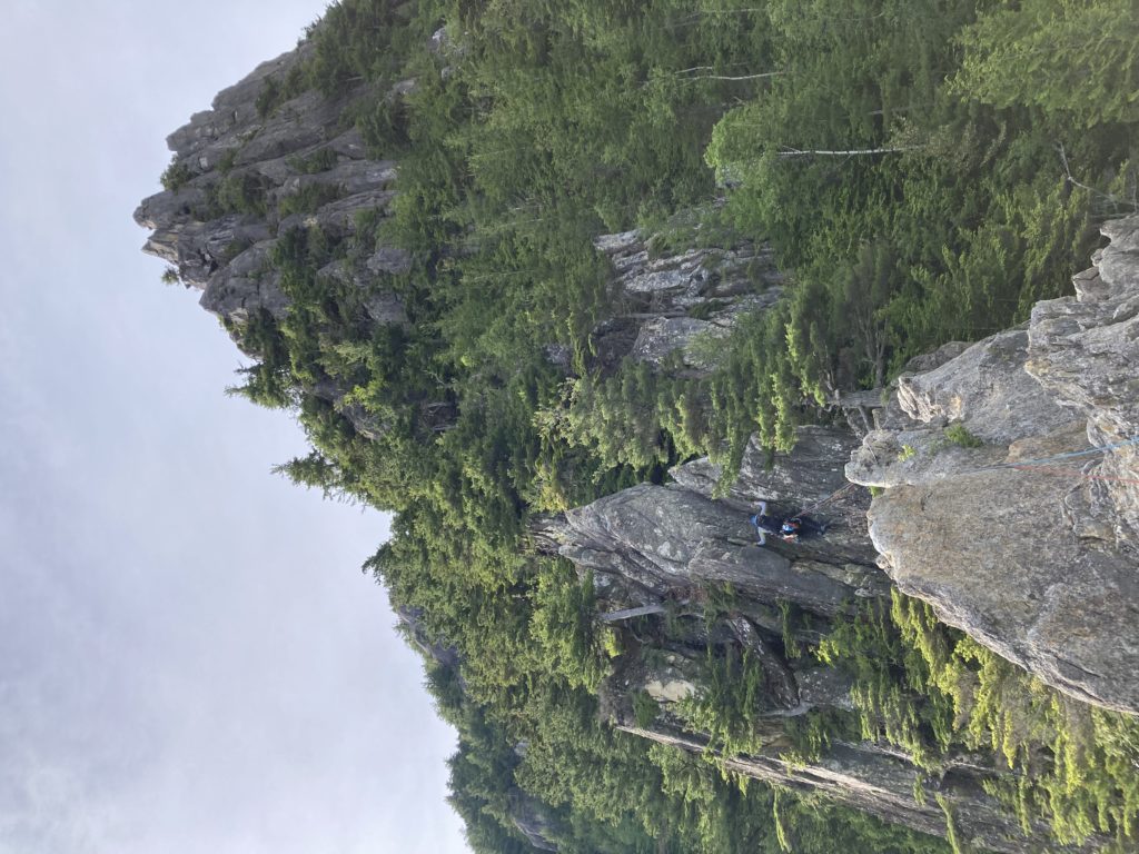 <10p目 ビレイ中のM尾 爽快な景色、気持ちいいですね!>