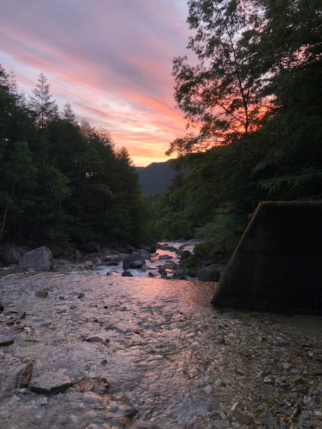 <きれいな朝焼け アプローチの渡渉地点にて>