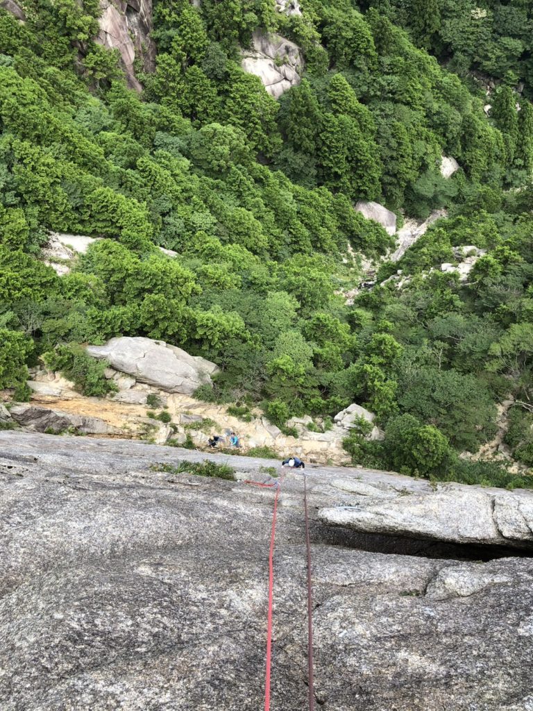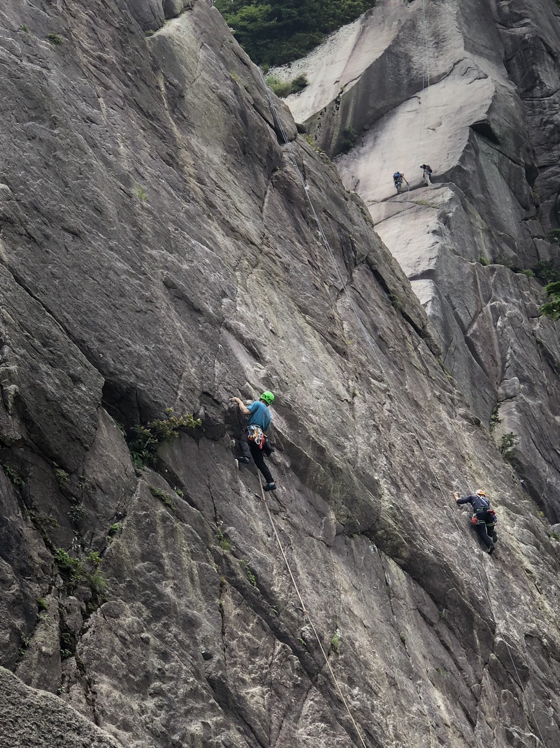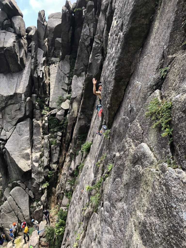 K先生は颯爽とリードで登られていきました!N尾は久しぶりのため恐る恐る登りましたが、自然の岩登りの気持ち良さを改めて感じました。N尾がリードで登った際、左ルートを行くつもりが、途中でルートを誤って右ルートへ合流してしまいました。反省、、
