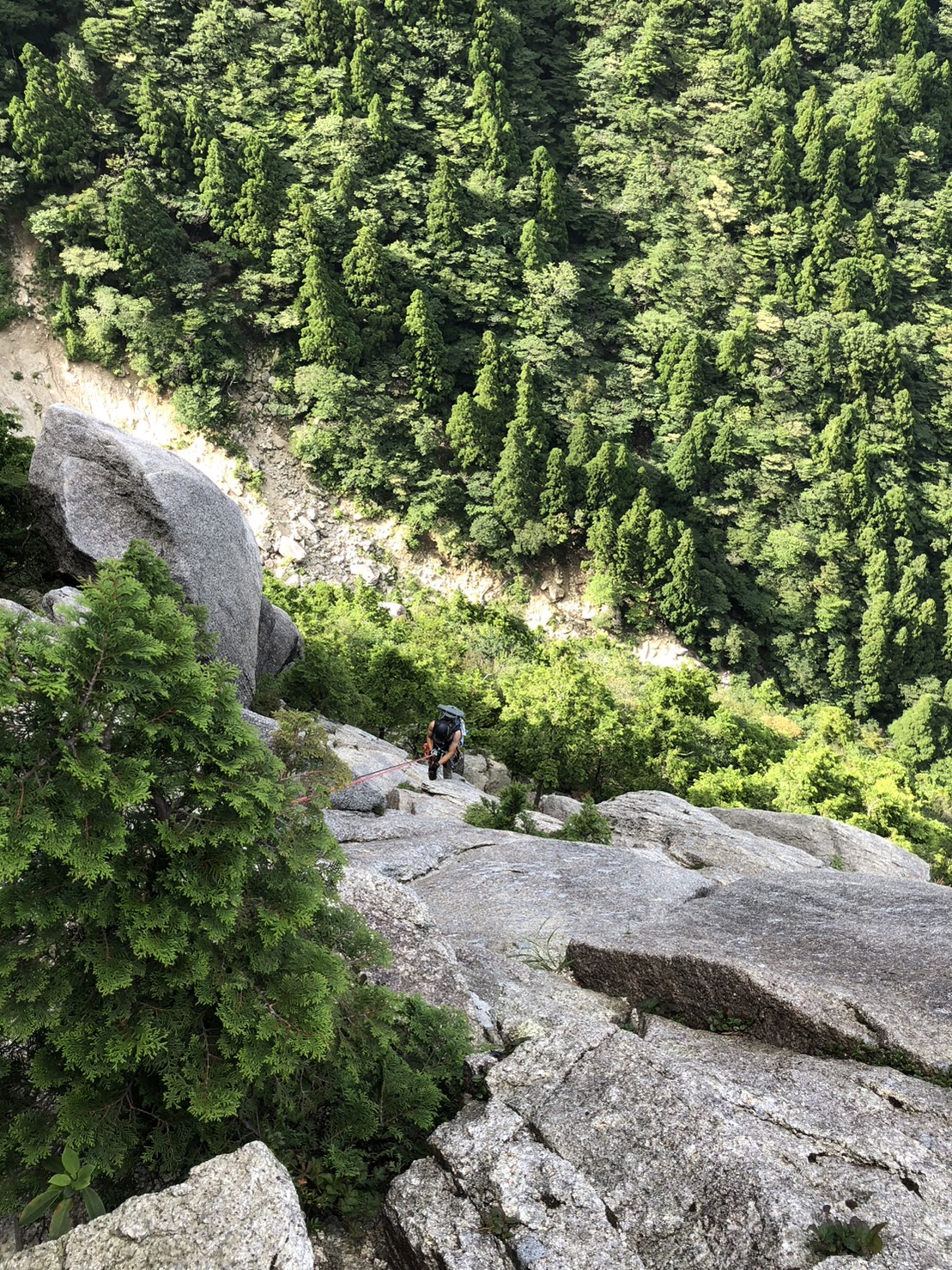 N尾は久しぶりのマルチのため、支点構築などを再確認してから開始。P7からP4までスムーズに進んで行きましたが、P4で先行パーティーが大人数であったため待ち時間が1時間ほどかかることが判明。時間も15時を回っていたため、懸垂下降で下ることを決断しました。次回は是非最後まで登りたいです!