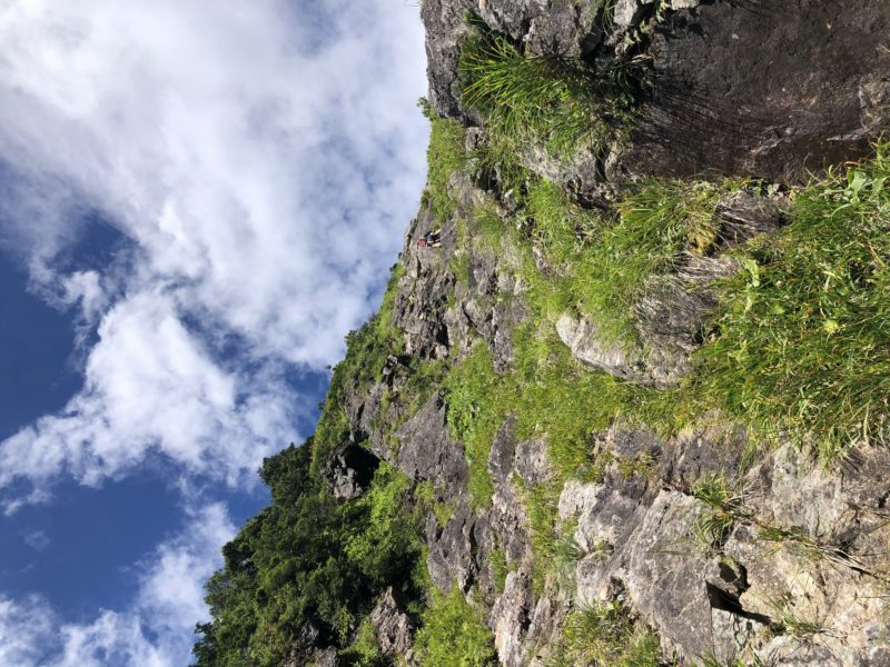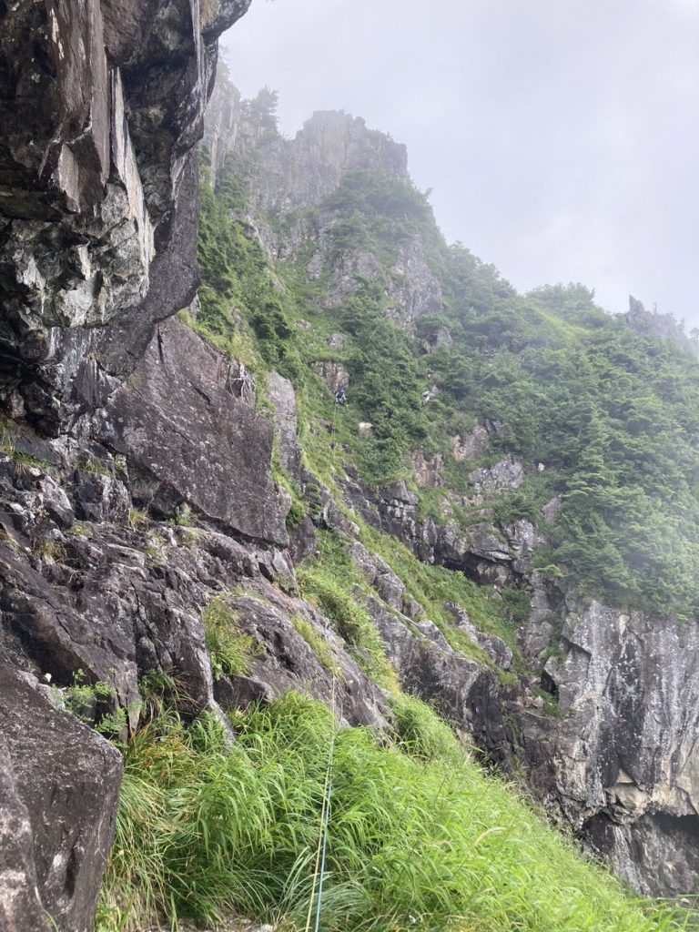 核心を抜けてほっとしたが、錫杖の頂上らしきところはまだだいぶ遠くに見える。時間も押しているので、急いで進むことに。それにしても草付きのルートが多くて神経を使う。