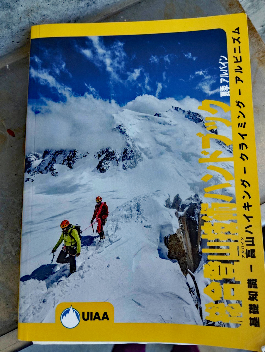 主任講師より、JMSCA教本「UIAA総合登山技術ハンドブック」を基に、今回研修内容の一通りのオリエンテーションと一部、終了点での下降セットについて実地の確認を行った。ちなみに「UIAA総合登山技術ハンドブック」は2022年度に頒布終了となっており残念ながら現状は入手できない。