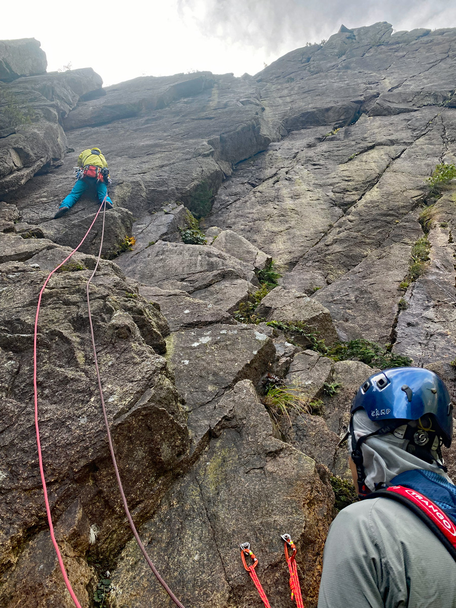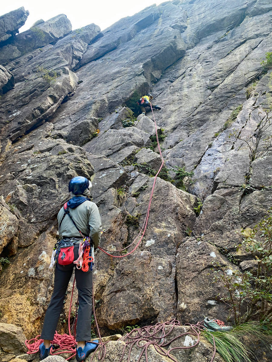 K村さんが左ルートをセカンド登攀中
