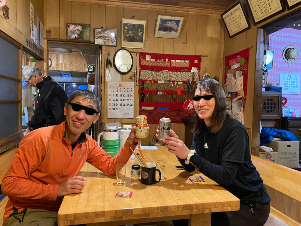 小屋に到着したら、まず乾杯!!