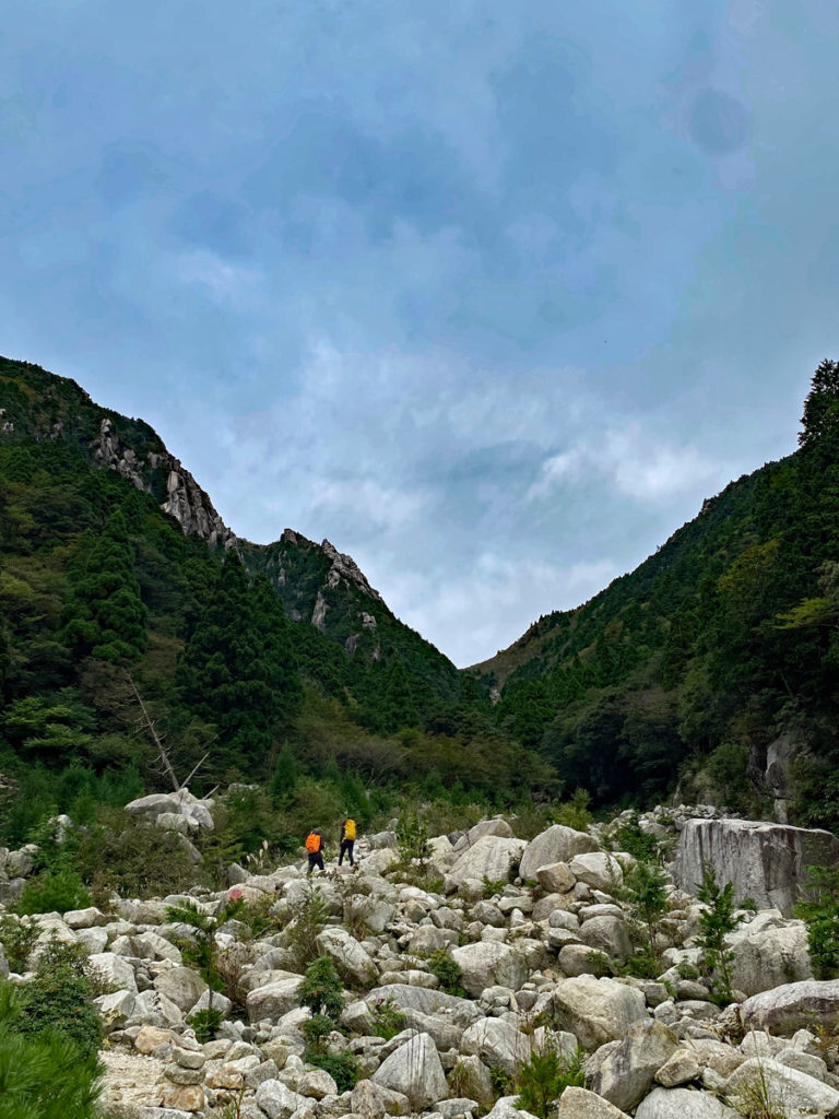 小雨のうちに降りようと早々に下山開始し、登山者駐車場へ到着した頃には本降りとなった。2日目は時間ギリギリまで登攀練習でき、雨にあまり濡れずに下山完了できて良かったと思う。