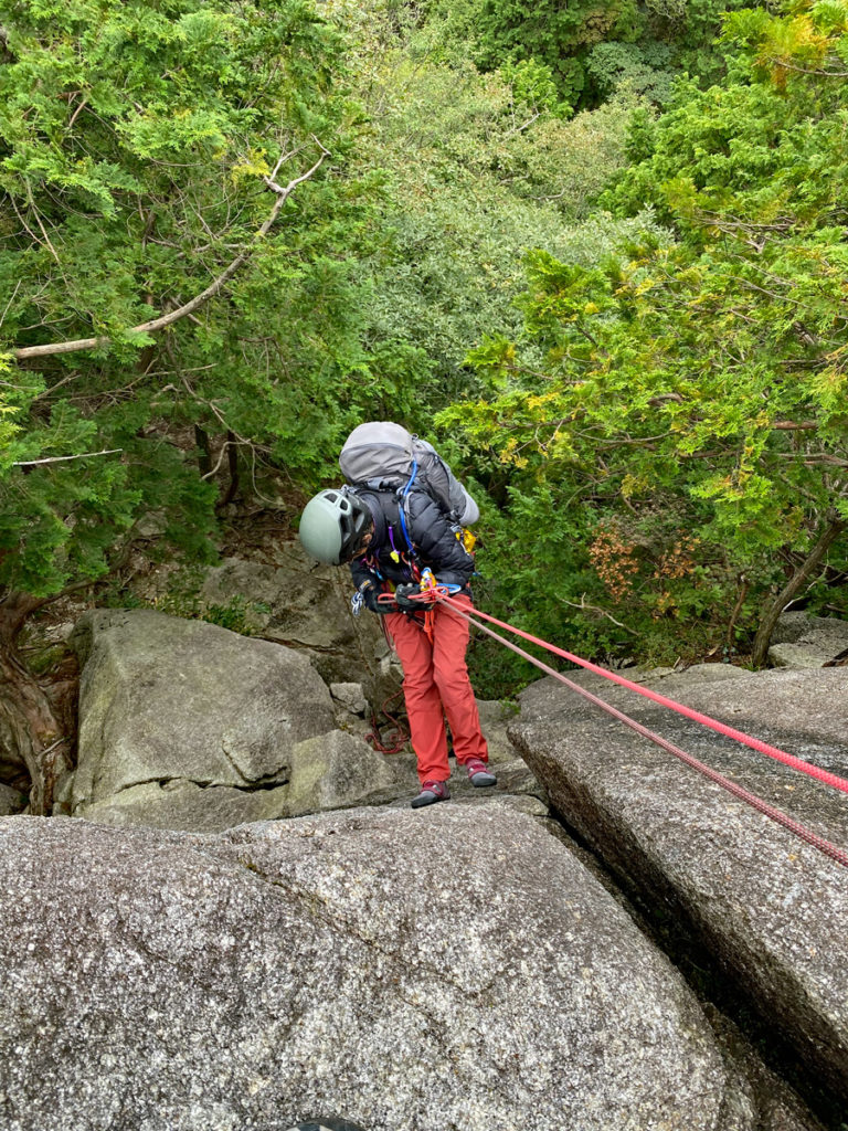 懸垂下降中のS根さん