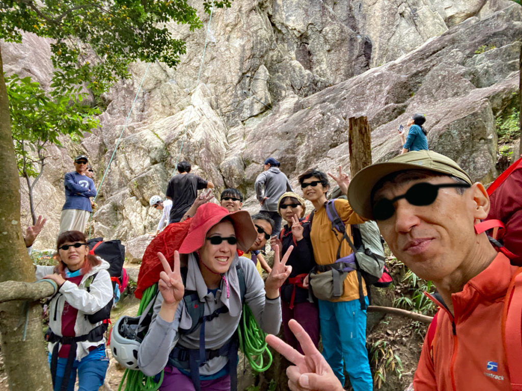 8月の沢登りに参加した方々から、秋にはスポートクライミングへ行きたいということで、その時に参加した一部メンバーや大津山岳会の皆さんと千石岩へ。当会から5人、大津山岳会から3人で合計7人が集まりました。今年の6月以来で久しぶりです。岩場は、クライミングシーズンらしく、クライマーでかなり混み合っていて空いているところを見つけて登っていったという感じです。夕方から雨予報だったので、15時少し前に切り上げたといった感じです。