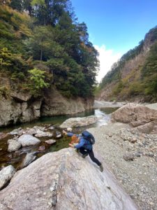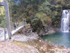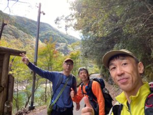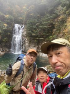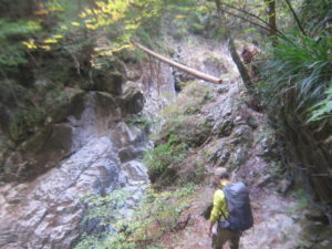 今年は暖かいためか紅葉が遅く、色づき始めという感じでしたが、2日間共に天候に恵まれ、ひとけが少ない渓谷にて、それぞれに個性的な美しさの滝々や水面、貸し切り状態となった静かな小屋での風呂・食事・酒・布団熟睡といったしみじみとした楽しみのある山行となりました。