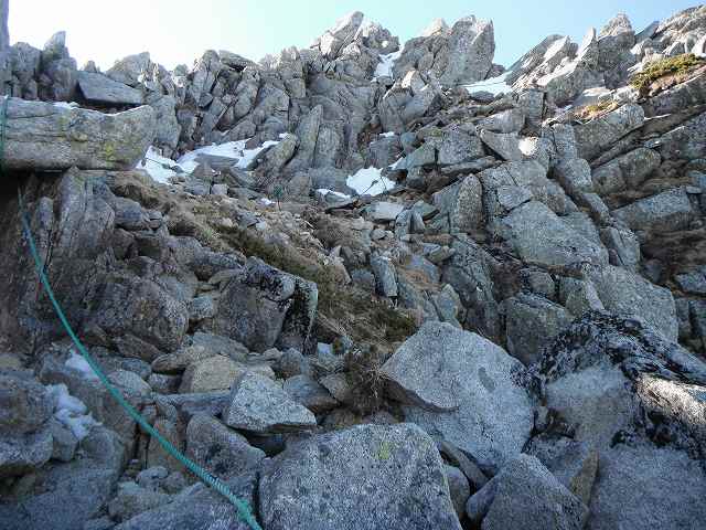 宝剣の登山道はこんな感じ。今年は雪が少ないです。去年の連休はアイゼン、ピッケルで登りました。