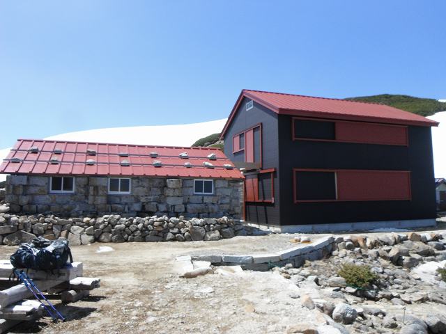 お世話になった西駒山荘の石室、冬期小屋(写真左)