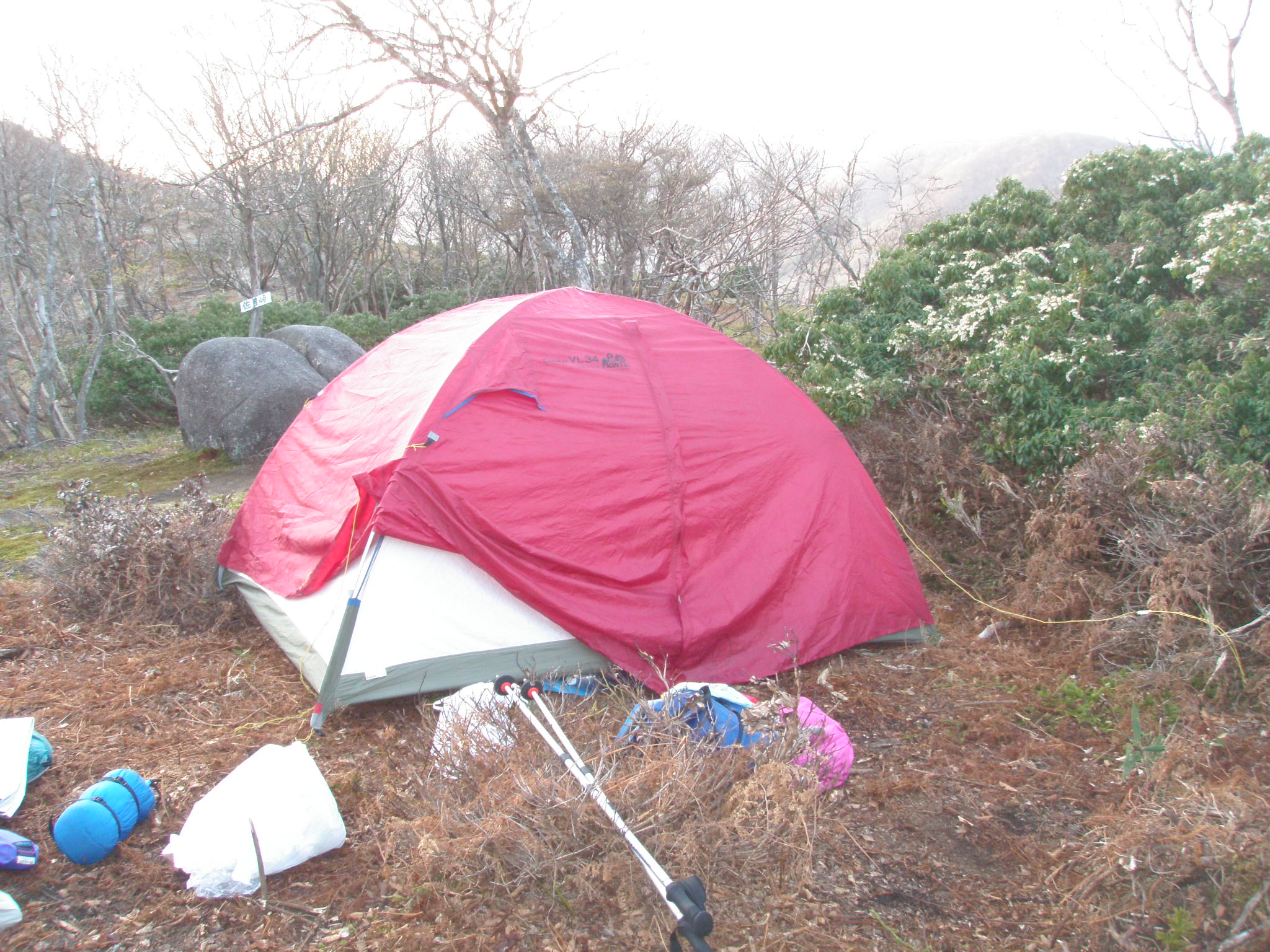 3名での山行の予定でしたが、1名の女性が所用でキャンセルとなり、もう一人も二人だけでのテント山行は出来ないとキャンセルとなり、やむなく単独山行を楽しむ事に成りました。夜は風が有り、外に置いたゴミを入れた、レジ袋の音がうるさく(動物があさっている音)気になり中々眠れませんでした。