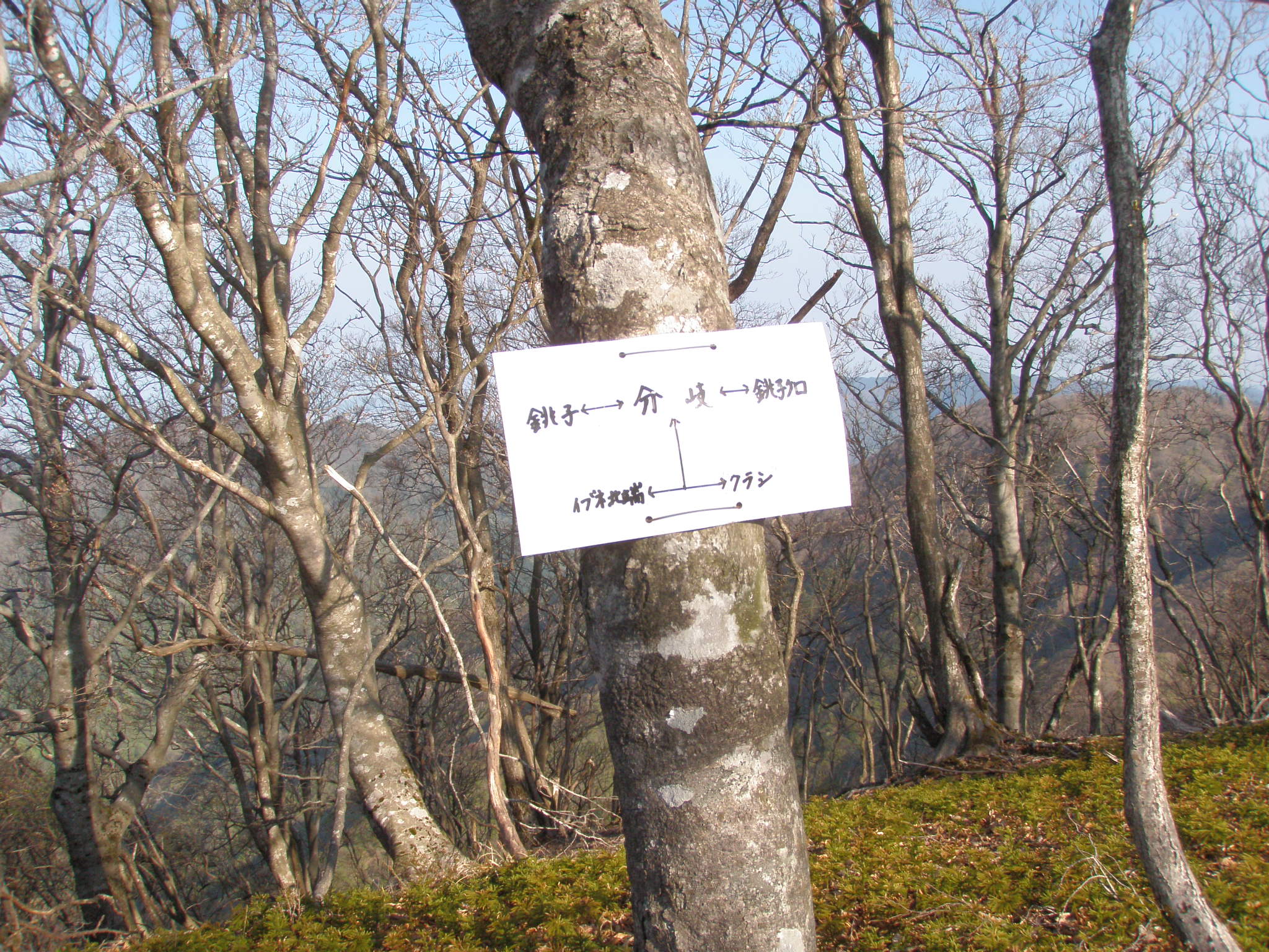 最後は来た道を戻りますが、朝、間違えた訳を検証します。イブネ北端から、クラシ北尾根、クラシの分岐の前に、もう一つ道標は有るべきなのです。おそらく風で飛ばされでもしたのでしょう。2年前も同じ過ちをしていますので、すでに2年前には無かったのでしょう。しかし道標を頼りに歩く事、事態がダメなのです。地図とコンパス。周りの地形を総合的に判断する必要があります。山の達人は、此処に道が有る筈と読むのです。