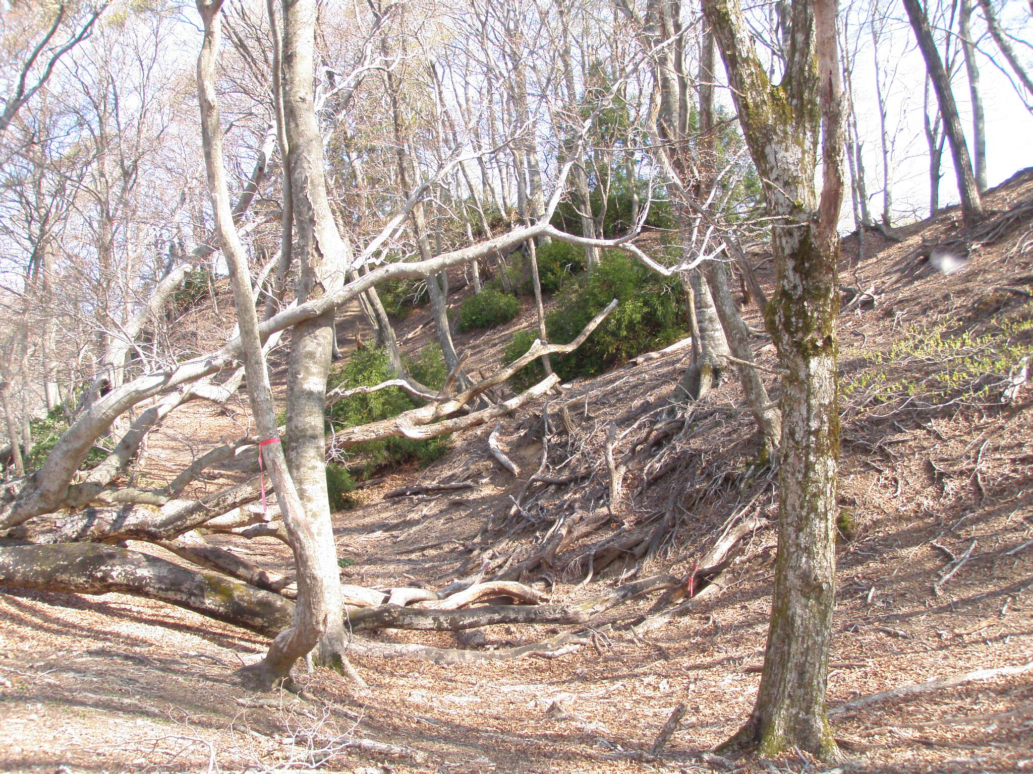尾根が分かれて、傾斜が有る場所で、今日初めて、GPSで計測して、コンパスを併せます。思った場所と違い、GPSが狂っていると思いました。GPSが狂う筈ありません。モンドがアホなのです。帰りのルートに入っていたのです。2年前も同じ間違いを犯しましたが、その時は間違った尾根に入る前に同行者に指摘されました。進歩が無いモンドです。