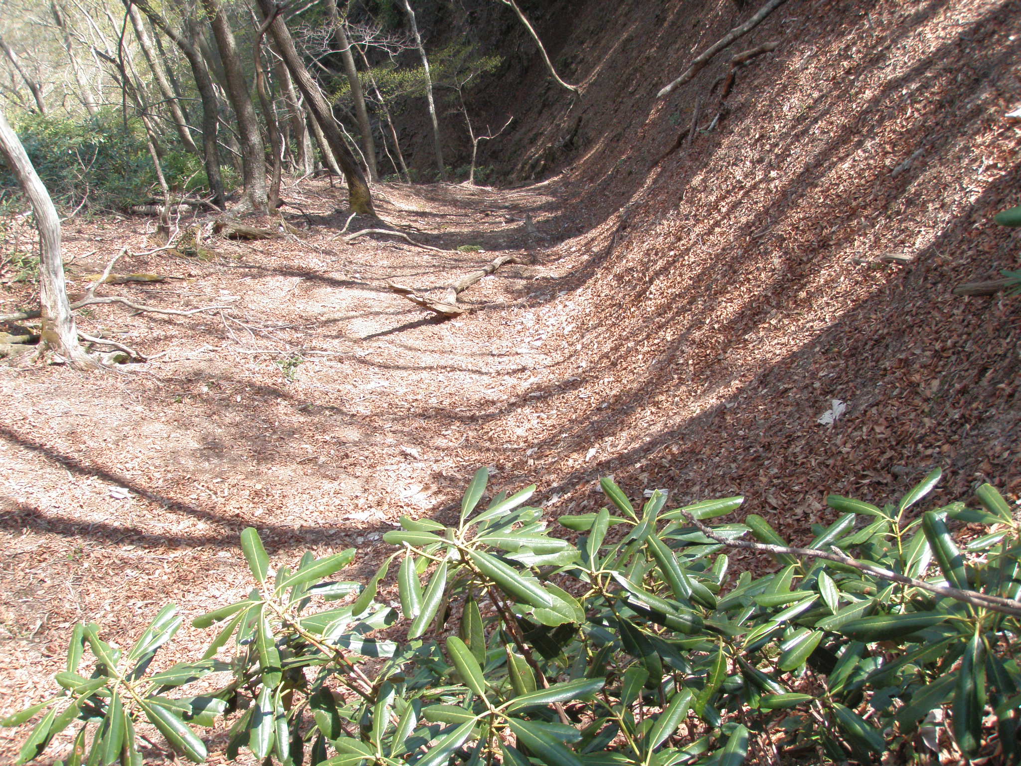 縦走路から離れたら、踏み跡は薄くなり、藪となっている場所もあり、2年前にルートを外した地点は、今回もきっちりと外し、谷の源頭部のシャクナゲ地獄を味わいながら、トラバースして正規の尾根に戻ります。