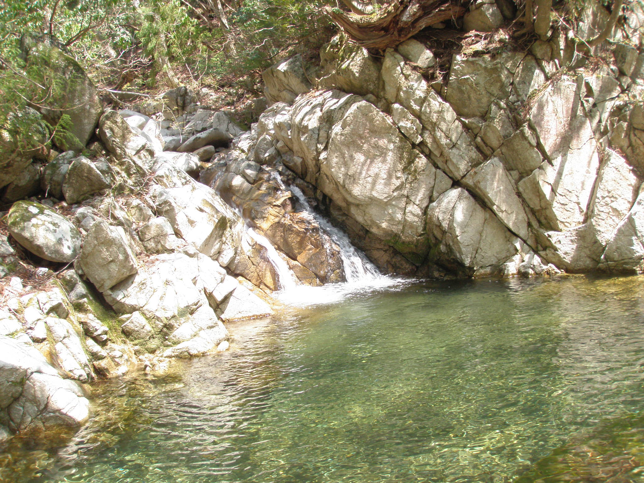 コリカキ場に直接降りる為に、わざわざハングしている、岩場を谷に降ります。最後は手袋を脱げば良かったと後悔しながら、何とか水に落ちずに降りれました。馬鹿ですね。