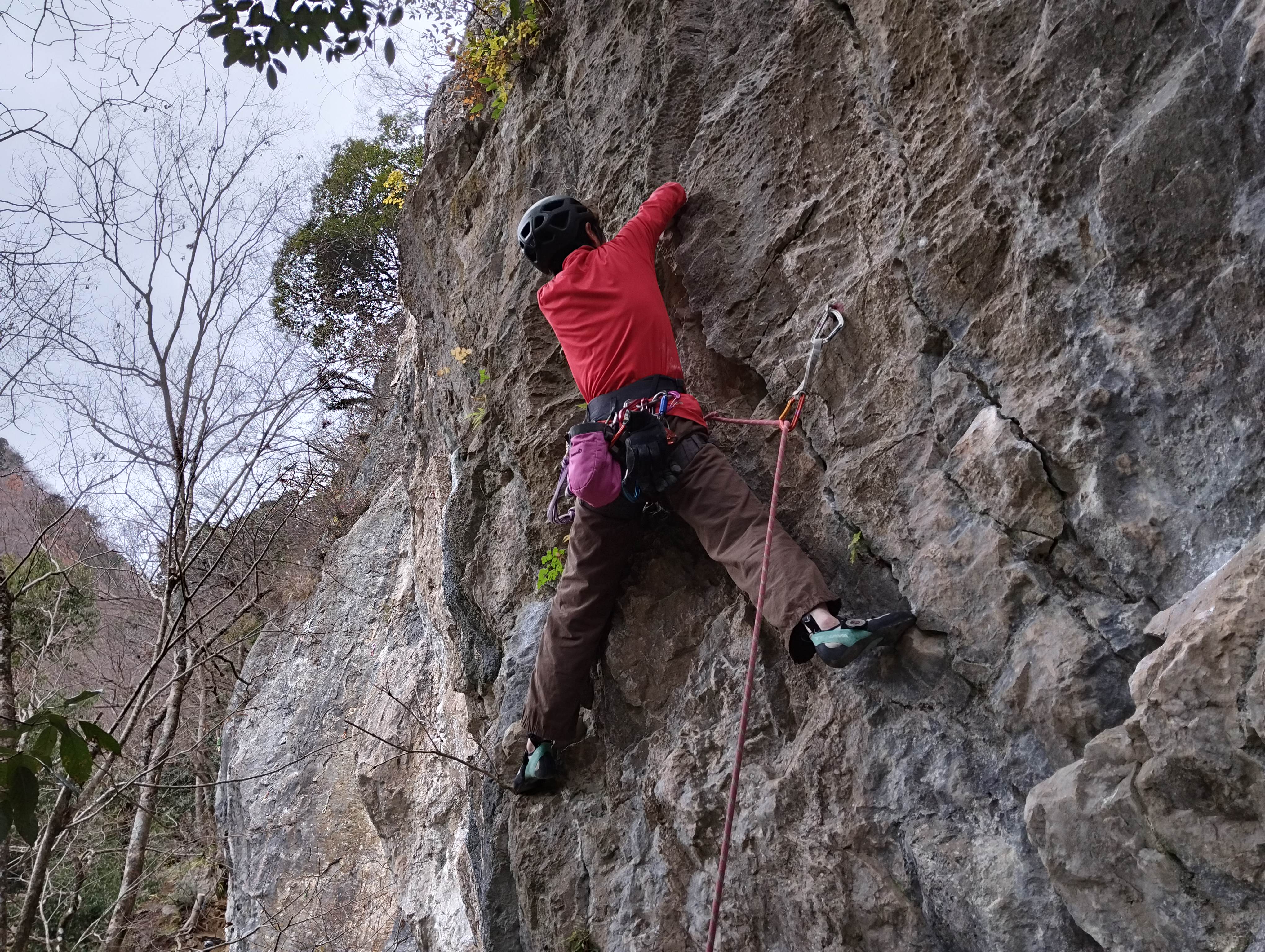 こんな素敵な岩場が地元にあってうれしいです。この時期岩が乾いて絶好のコンディションだそうで、M尾さんはフリクションめっちゃいいわ〜〜仰ってました。遠方からもたくさんのクライマーさんで賑わっていました。