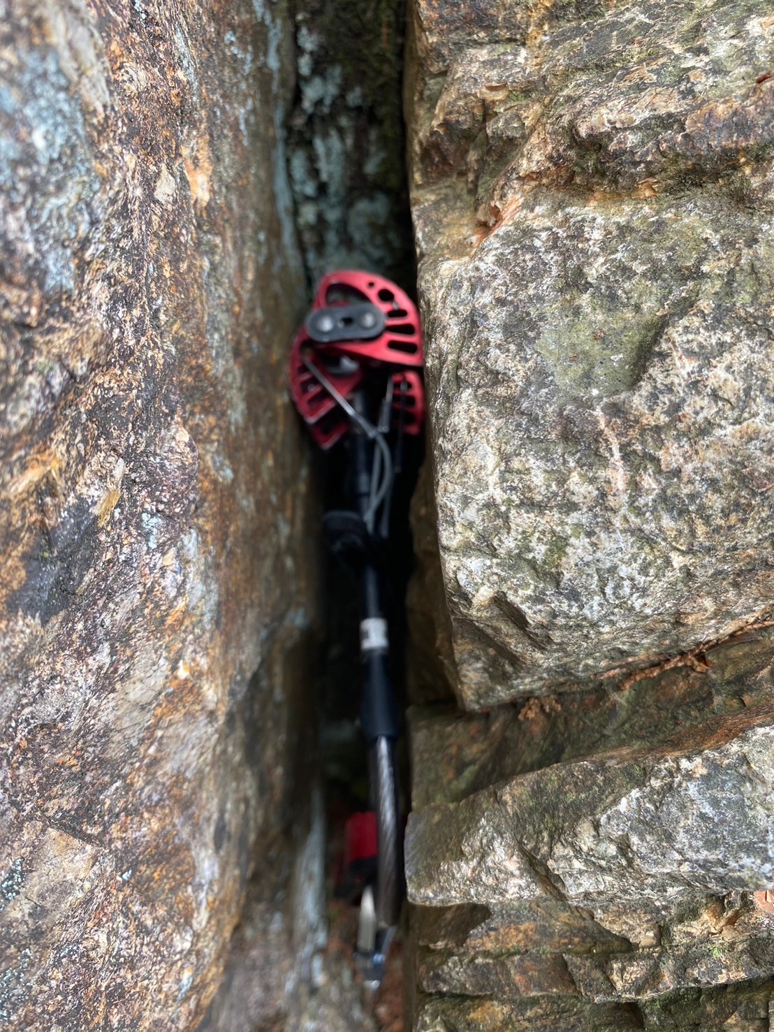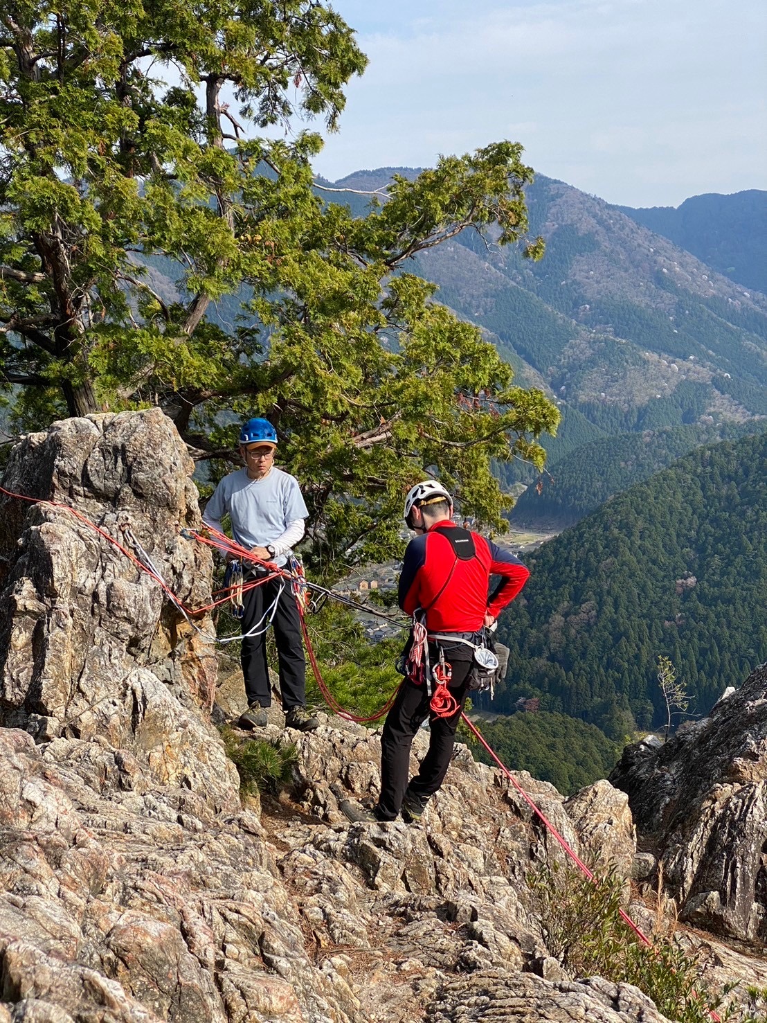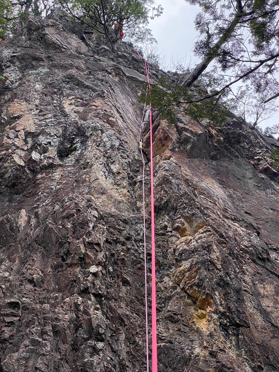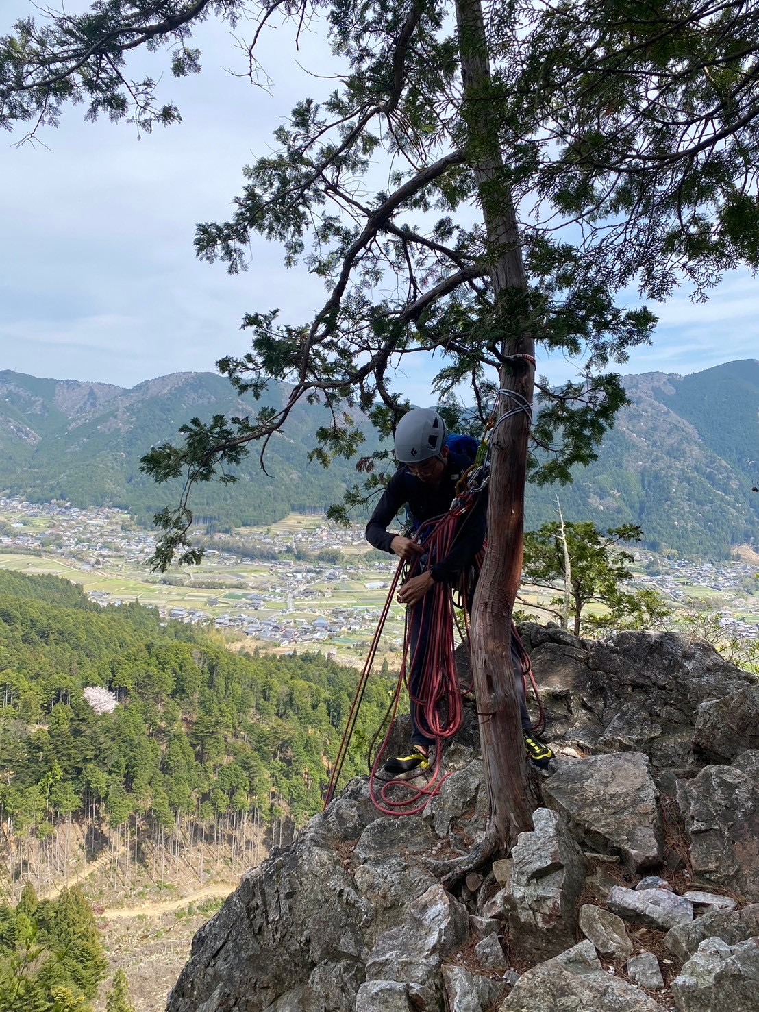 終了点でビレイに良い立木がありましたがマスターポイントを作ったのが下の方過ぎてビレイの姿勢が大変でした。