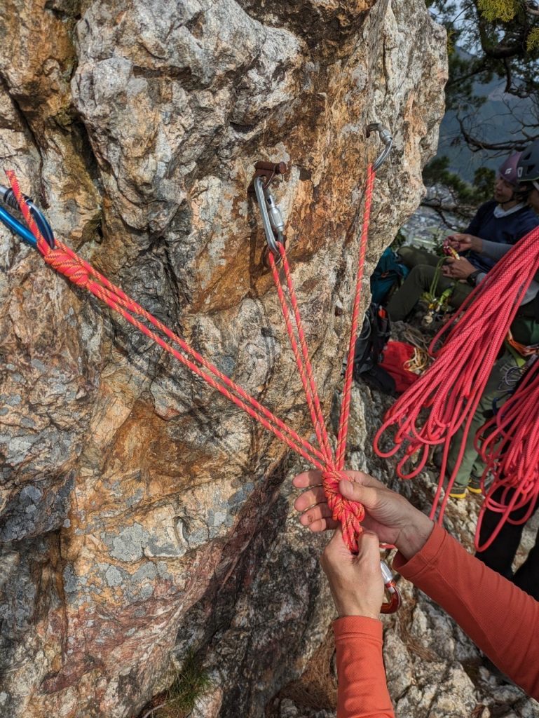 意外に難しかったのが、フォローをビレイ中のロープの束ね方。教科書の様に綺麗に均等に束ねられるかと思いきや、束ねるべき場所からダラダラと下に落ちて行ってしまいます。