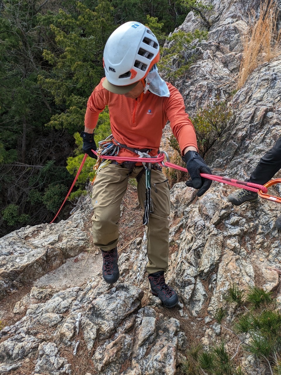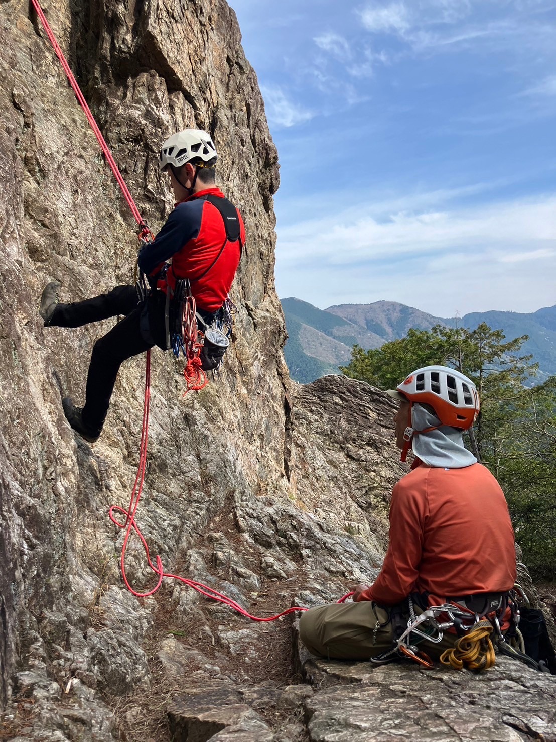 北小松の獅子岩でのマルチピッチ入門に続き、本日は金毘羅山にてマルチピッチの練習を行いました。