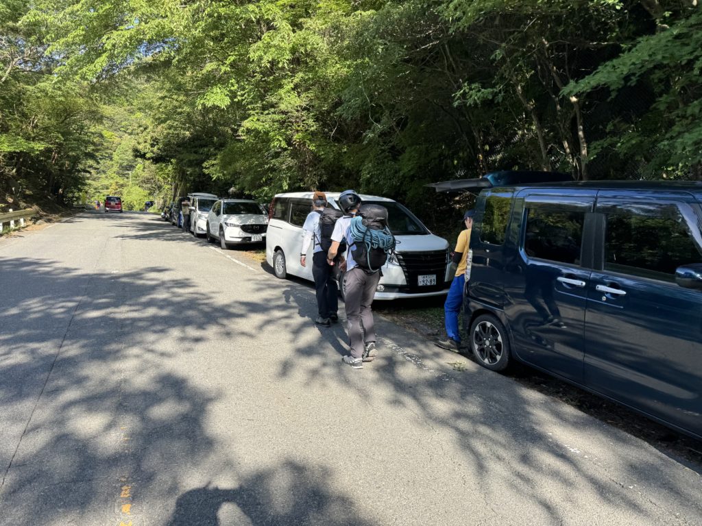 6時50分に現地に到着すると登山、クライミング共に良い季節な為か車がいっぱいでした。N澤さんが比較的近い場所に車をねじ込んでくれて助かりました。