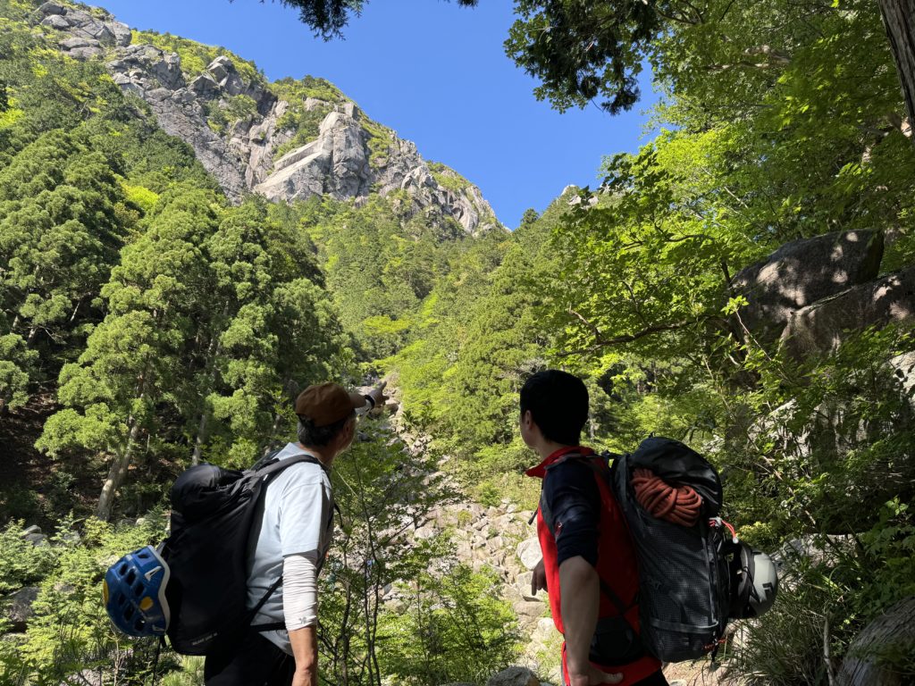 この日は晴天で藤内沢出会から見る岩は良く乾いているようで最高のクライミング日和になりそうでした。