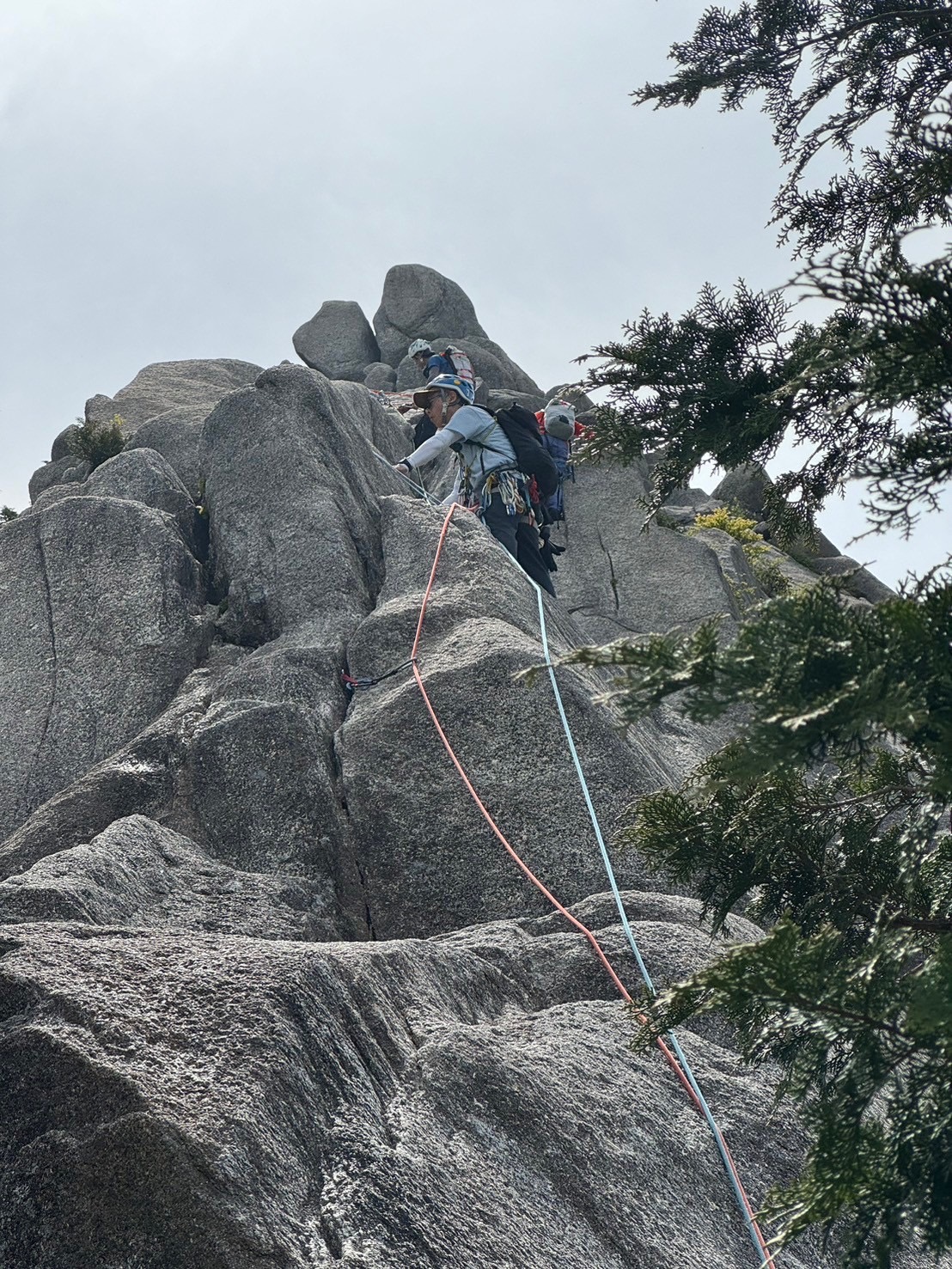前尾根の待ち人数が多ければ1壁で練習する予定でしたが、1グループしかいなかったのでN澤さんの判断で前尾根に登る事になりました。I上さん、私は練習生として前尾根を通しで登るのは初めてだったのでN澤さんのAllリードで我々はフォロワーをしながら技を学ばせてもらいました。