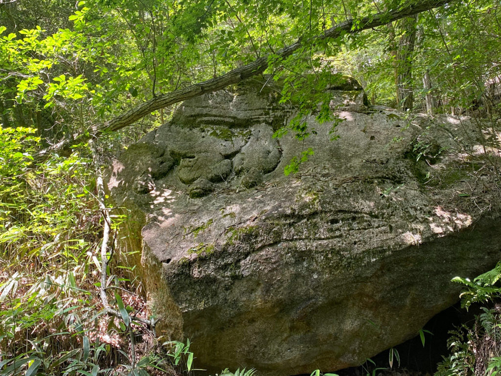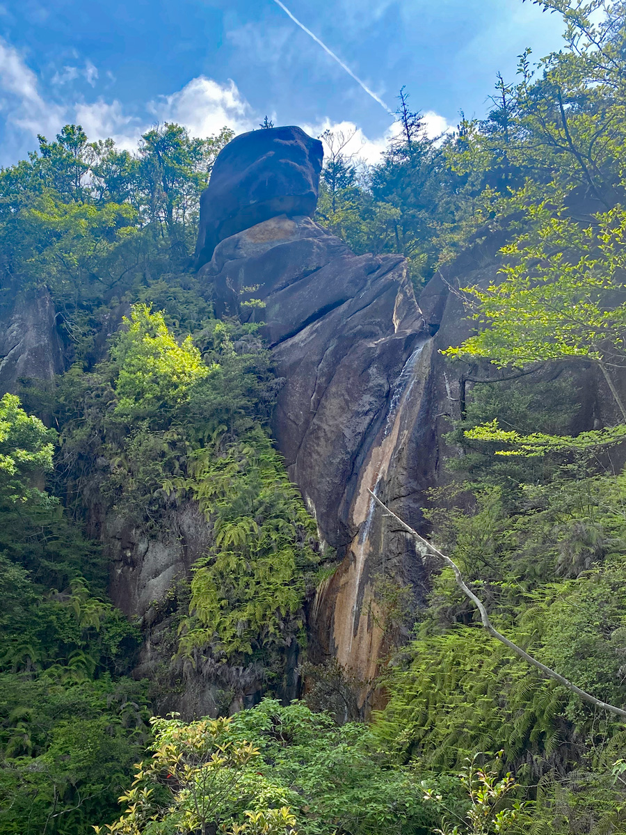 いままで逆さ観音は見ていなかったので、せっかくなので寄り道して見に行きました。なぜ逆さになっているのか。。。道標の掲示板によると、オランダえん堤建造時に、逆さ観音が元々あった山上の大岩が石材不足で削り取られ、バランスを崩して山上からずり落ちて逆さになったそうです。。。歴史は面白い(^_^)