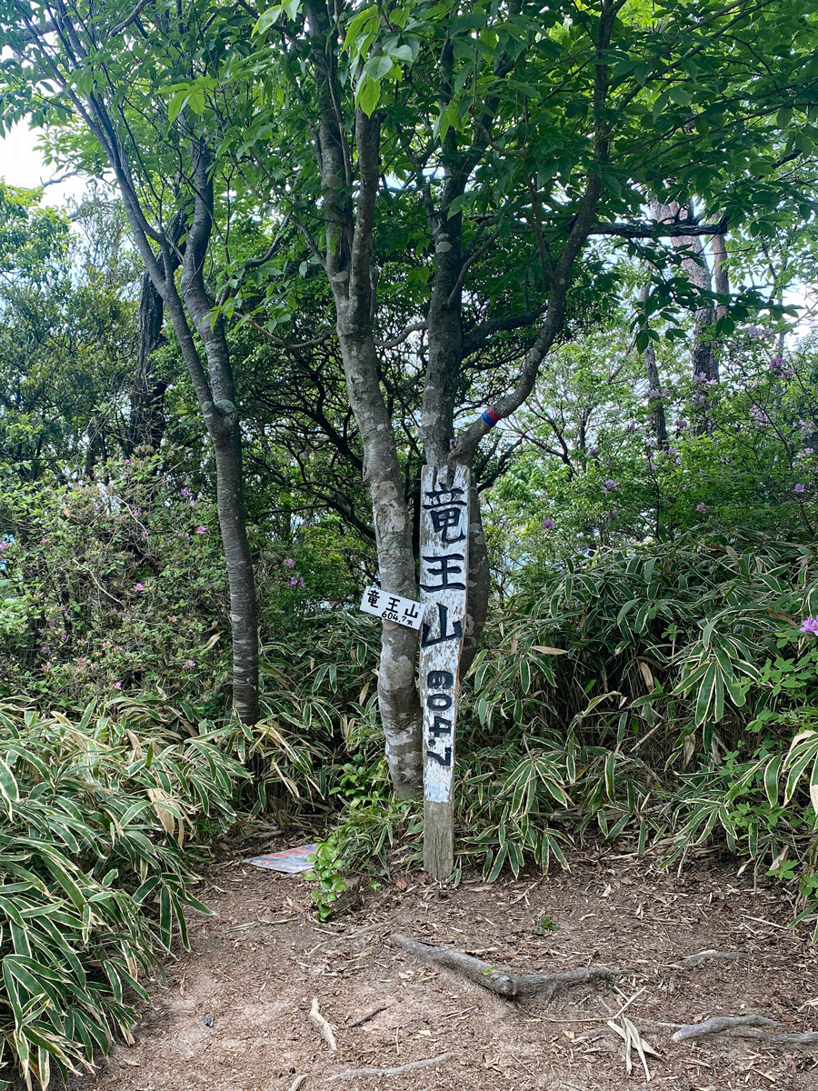 竜王山山頂は木や草だらけで