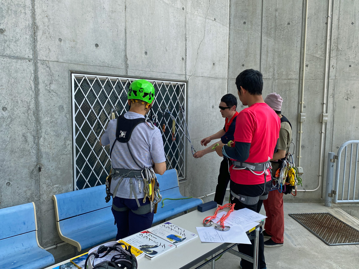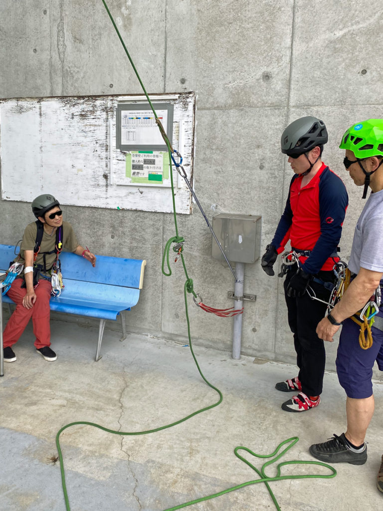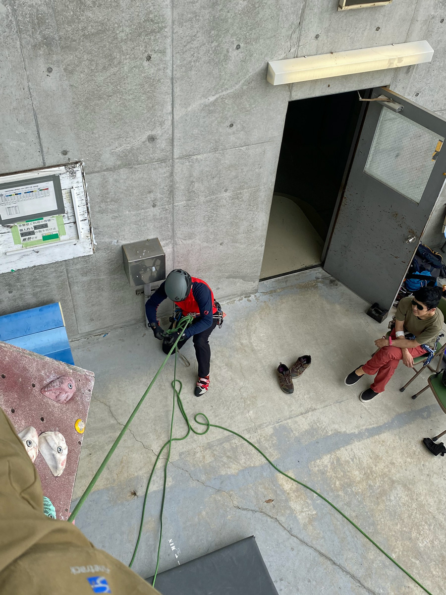 2022年度に実施したKO-WALL奥村店長による講習会で学んだことの反復練習を、昨年度と同様に会メンバー同士で実践することで身につけ、より安全にクライミングを楽しめるように今年度も企画しました。土日は同じ研修内容を行うこととしましたが、各々の参加メンバーの技量によって内容を省略する等、できる限り効果的に学べる研修としました。尚、23日は雨模様でしたが、全天候型(台風などの荒天では困難ですが。。。)の施設であったため予定通り二日間とも実施できました。
