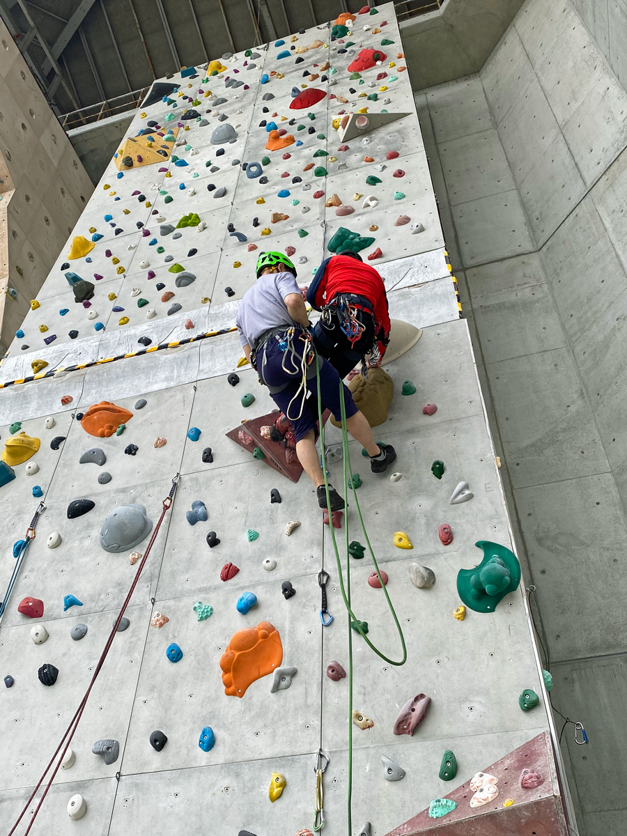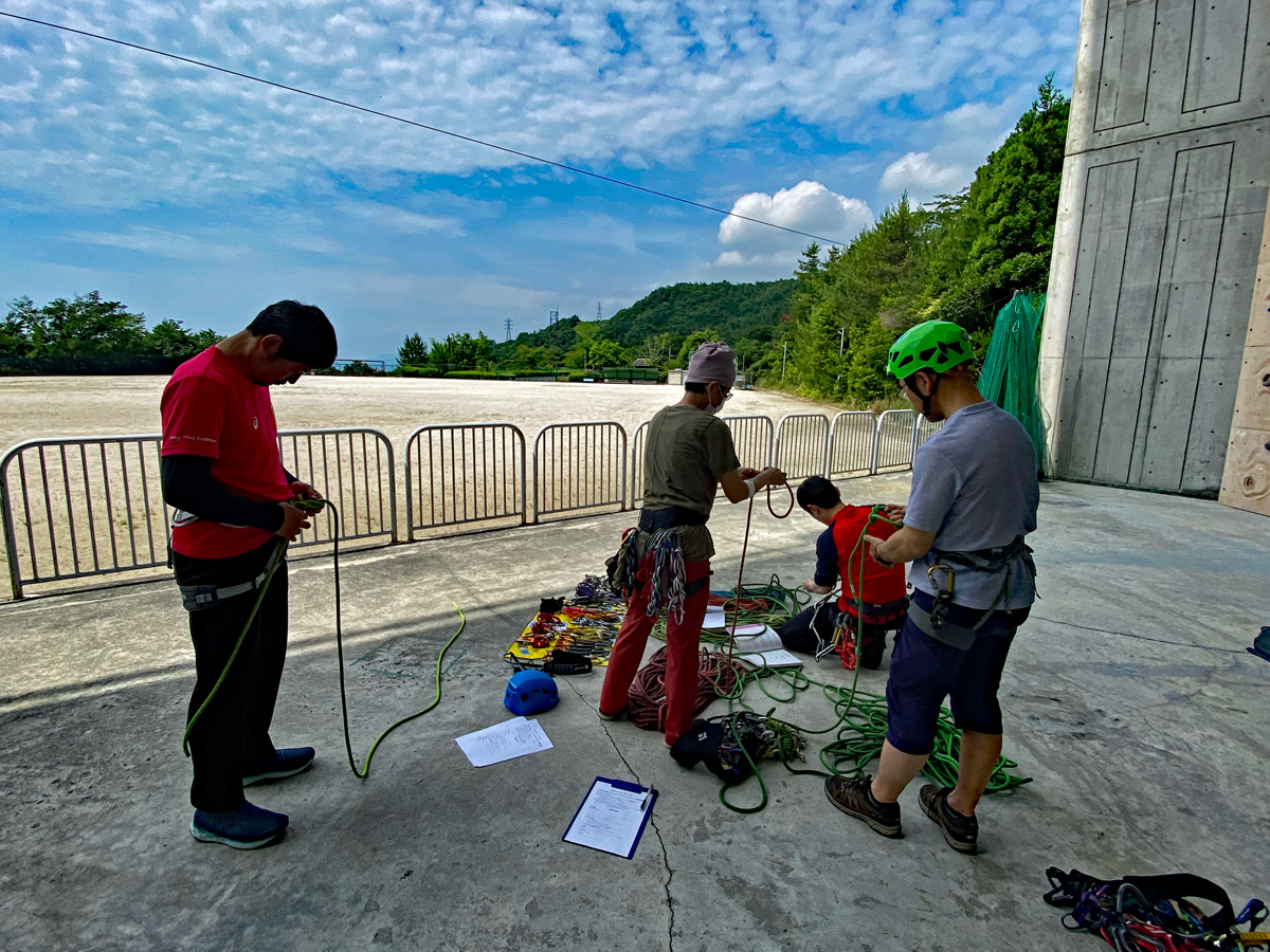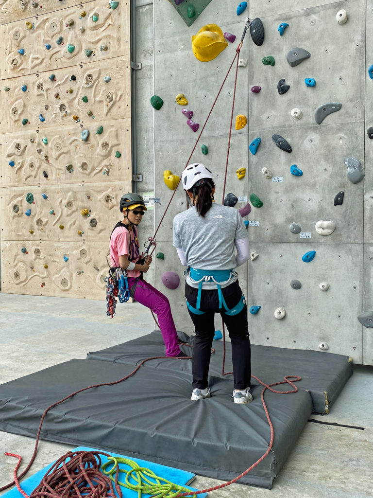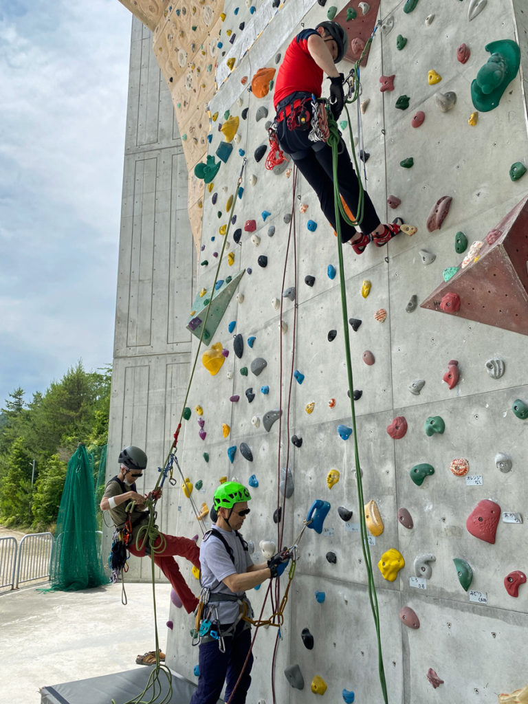 2022年度に実施したKO-WALL奥村店長による講習会で学んだことの反復練習を、昨年度と同様に会メンバー同士で実践することで身につけ、より安全にクライミングを楽しめるように今年度も企画しました。土日は同じ研修内容を行うこととしましたが、各々の参加メンバーの技量によって内容を省略する等、できる限り効果的に学べる研修としました。尚、23日は雨模様でしたが、全天候型(台風などの荒天では困難ですが。。。)の施設であったため予定通り二日間とも実施できました。