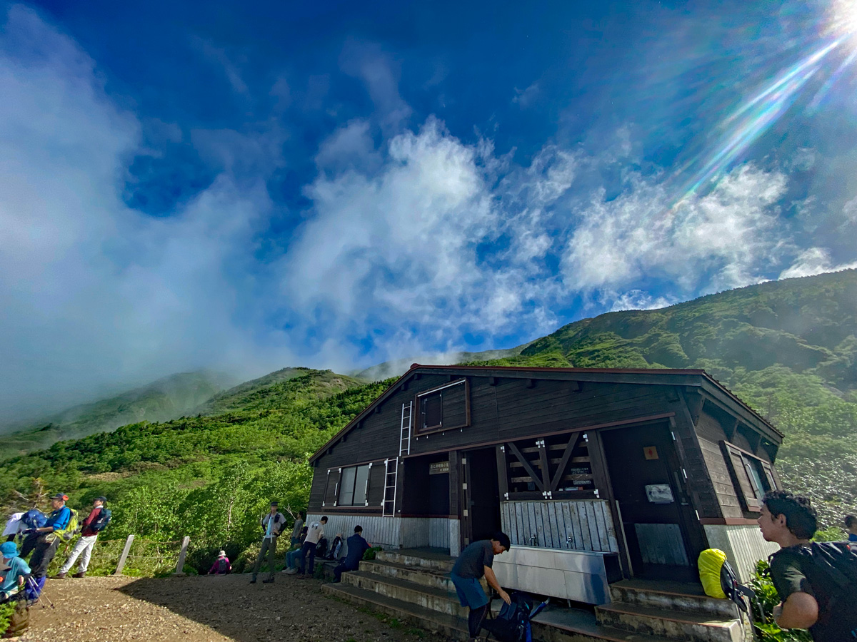 別当出合へ行く道中は雨が降っていて、別当出合の登山者駐車場はガスガスでした。標高が高くなるに連れて天候が良くなってきて、甚之助避難小屋へつく頃には晴れ間が時折見えるようになりました。白山の歩荷訓練で、脚がキツくなってくるのは12曲がりから黒ボコ岩あたりなのですが、今回もそんな感じでした(^_^;