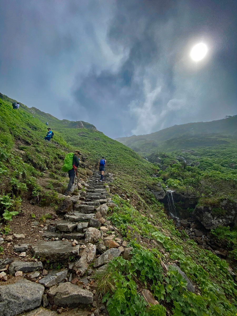 それを過ぎると少しだけマシになりますね。白山室堂から白山山頂へ行く道中は、黒百合の咲く時期だったこともありよく咲いていて写真を撮りまくってイヤされましたよ笑。白山山頂は登山者多かったです。