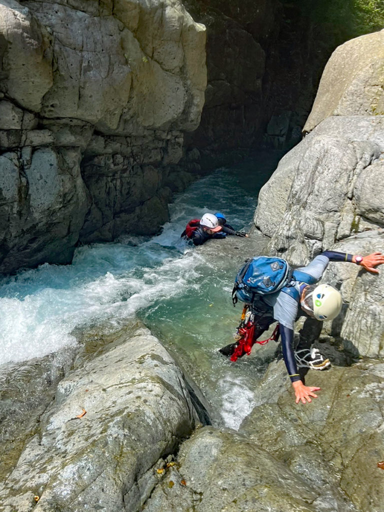 左側をへつりながら渡る