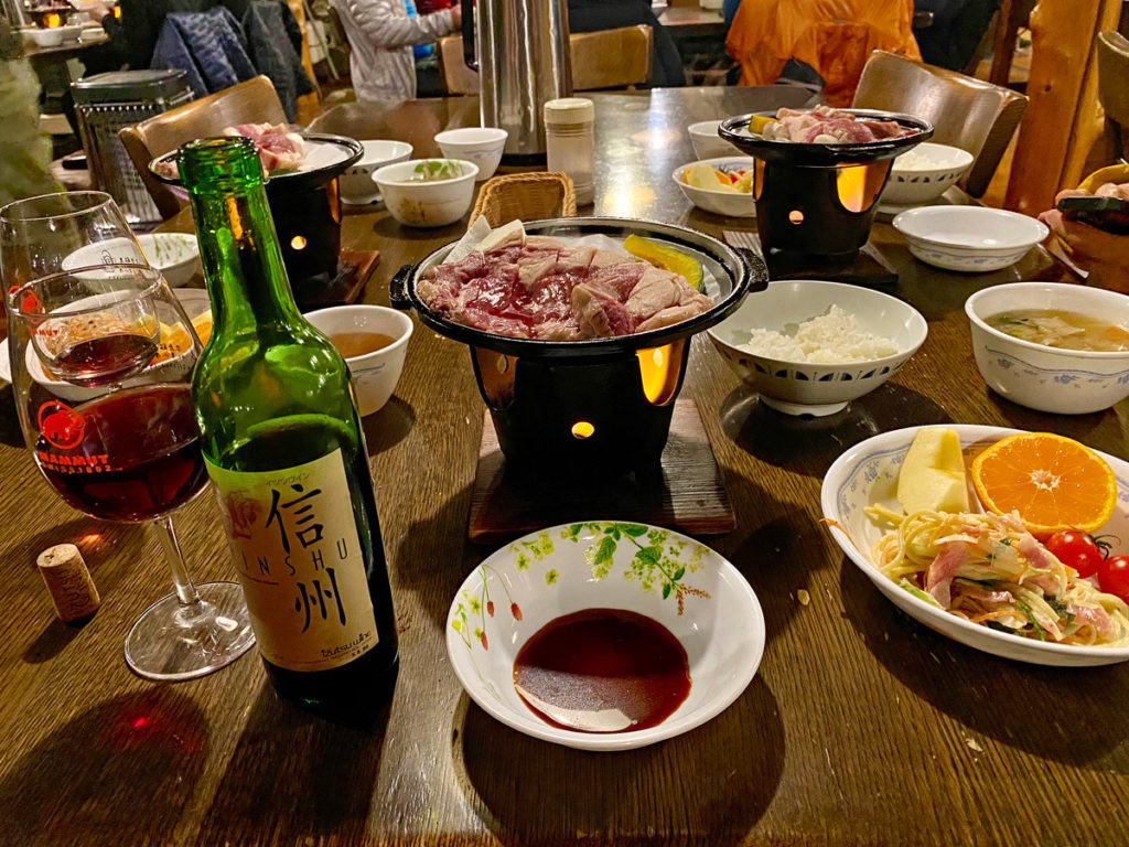 晩ご飯は、今回もステーキで、オプションの赤ワインを楽しんで八ヶ岳の夜を満喫しました〜