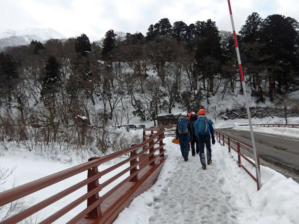机上講習(積雪期装備、滑落停止、雪上歩行、支点構築、SABの実演説明など)