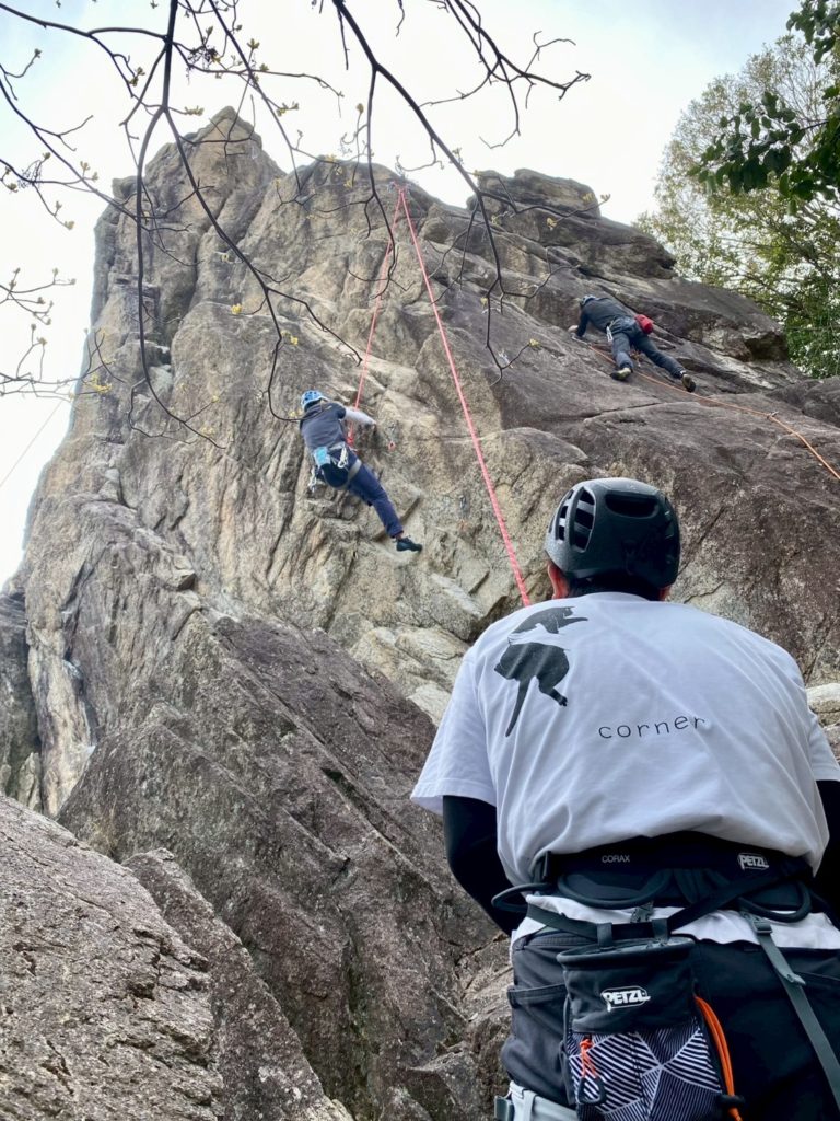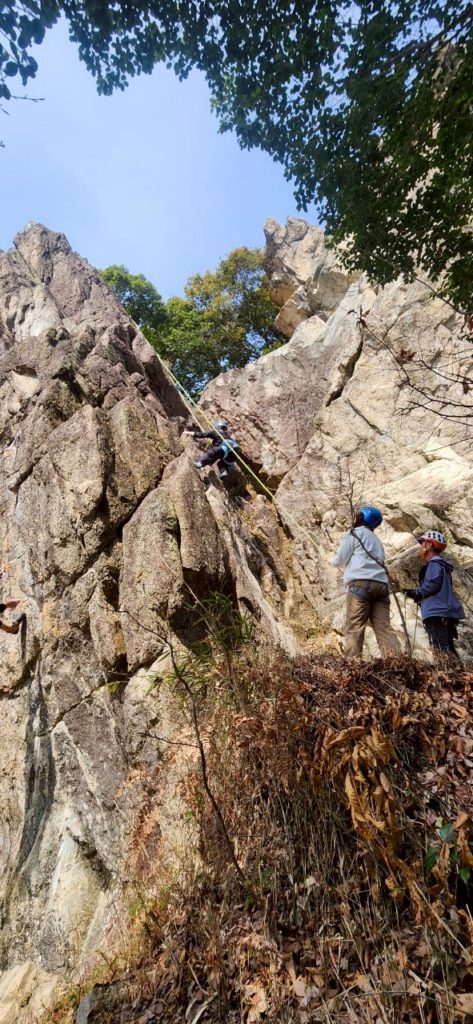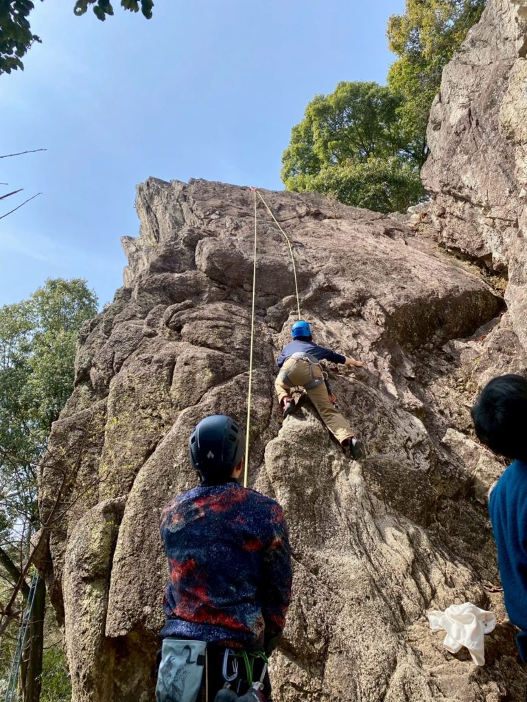 僕「N村」は、半年ぶりの外岩で初めて千石岩に行きました。久しぶりの外岩だったので登れるか不安はありましたが、登ってみたら思った以上に登れたなぁーと思いました。次回行くときは、トップロープ登れたところは、リードで登れるように挑戦したり、登ったことのない岩場はまた、挑みたいなと思います。今回の岩場が楽しすぎて、このメンバーの中で一番はしゃでたかもしれないです。また、千石岩行きたいです。
