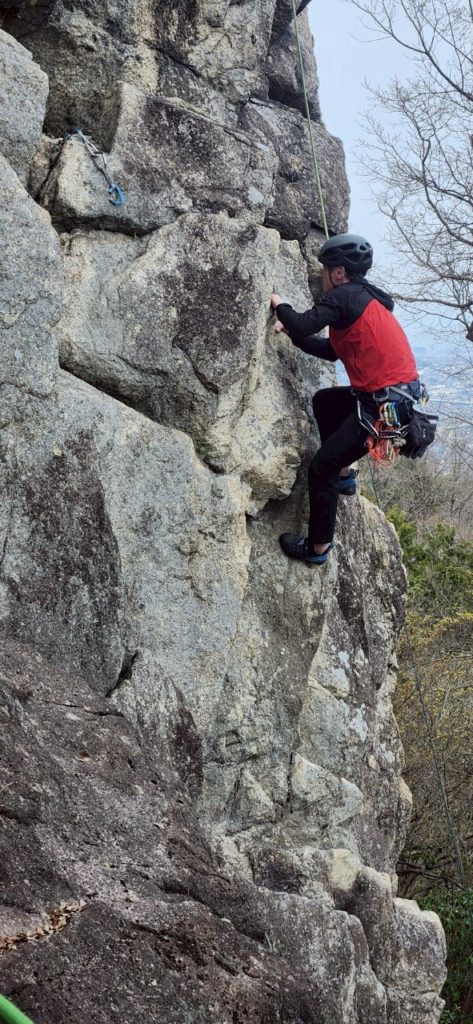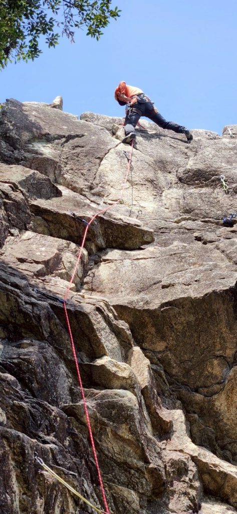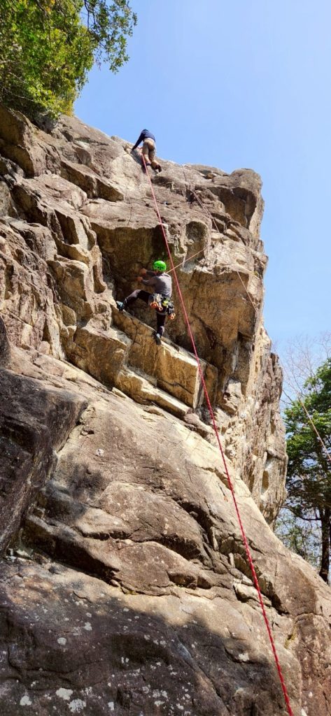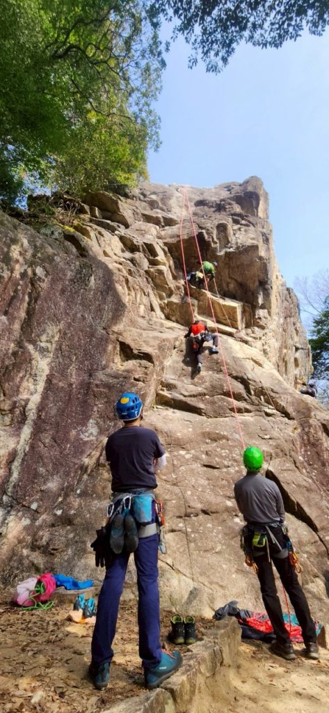 まず、ウォーミングアップにグレード5.6くらいの岩場をM戸、F田、N藪、O田、N村「自分」でリード、トップロープで登りました。
